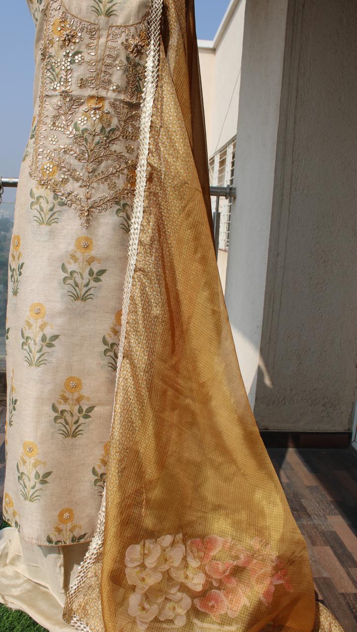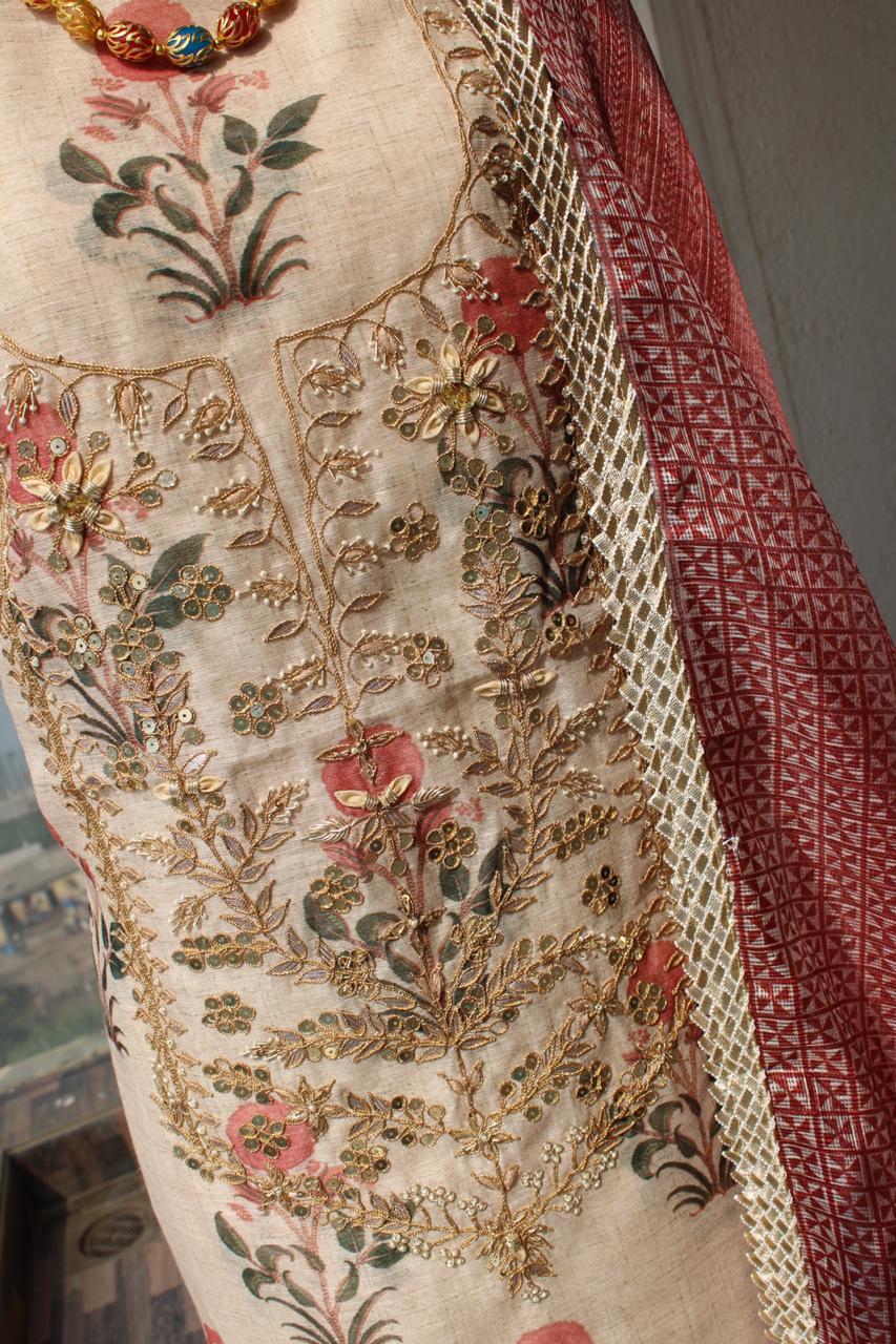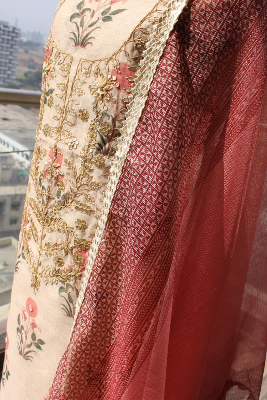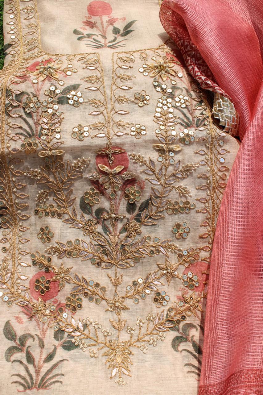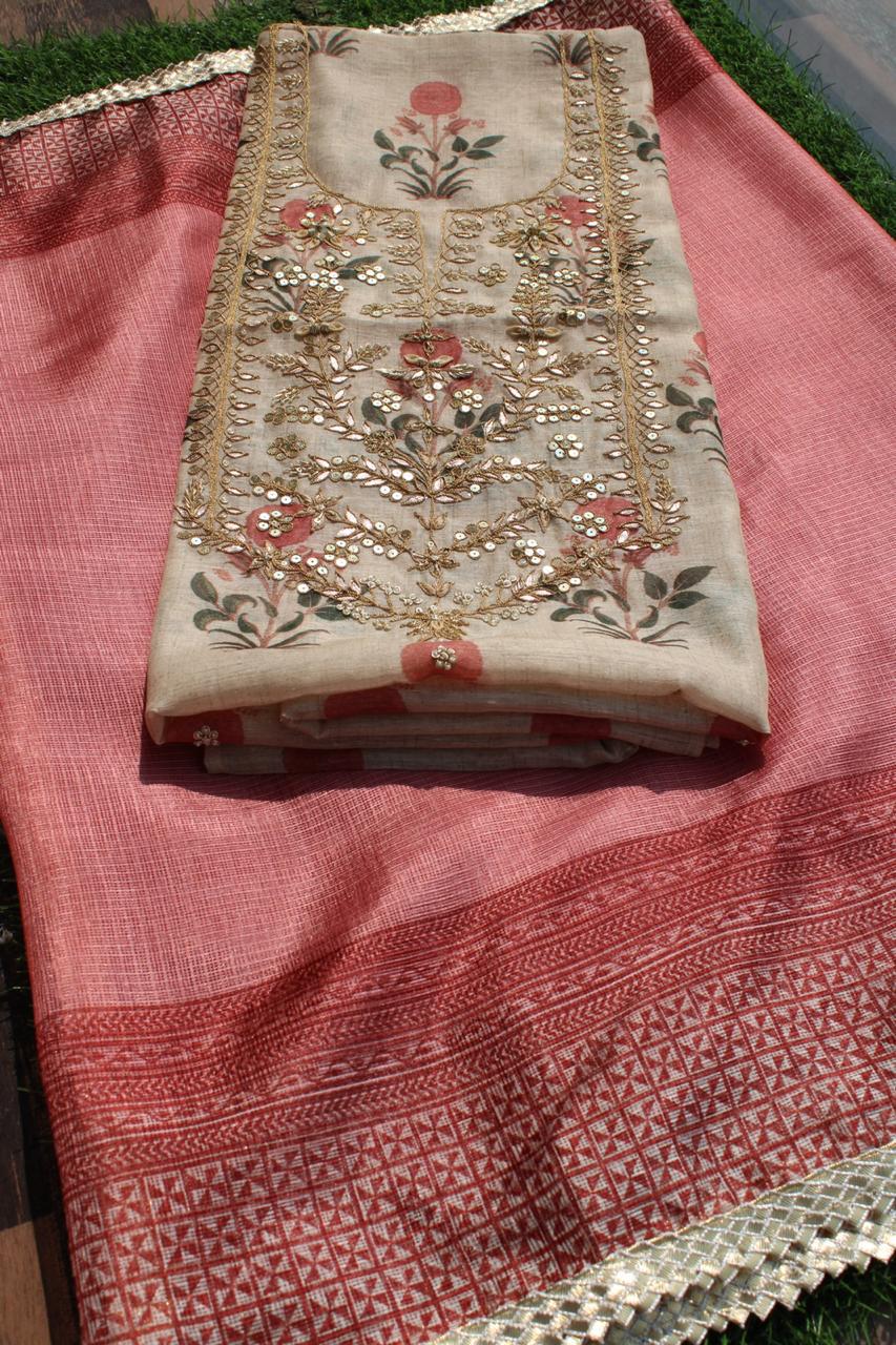 Beautiful chanderi shirt with hand wrk with gota n pearl on neck Small butties all over