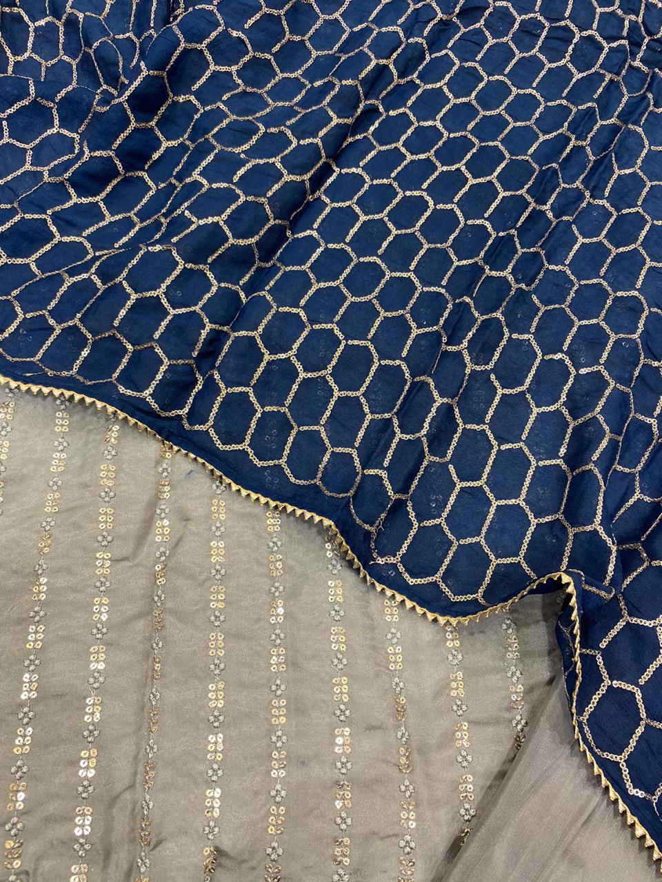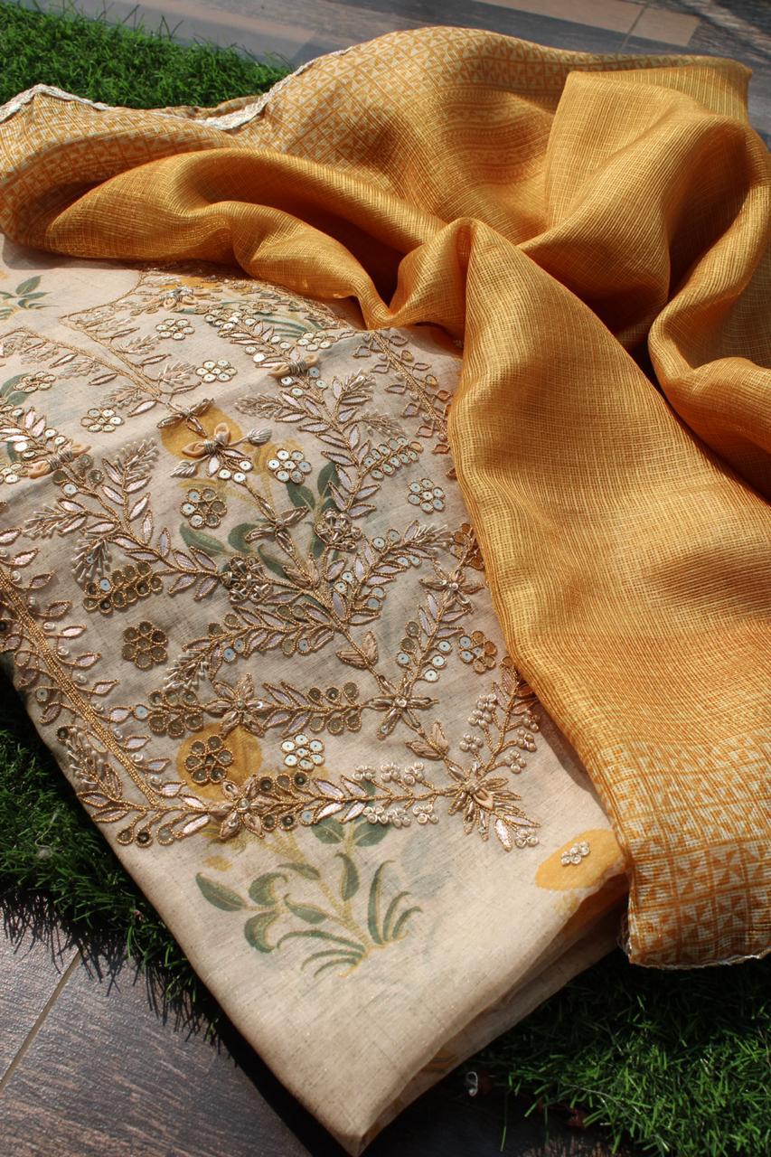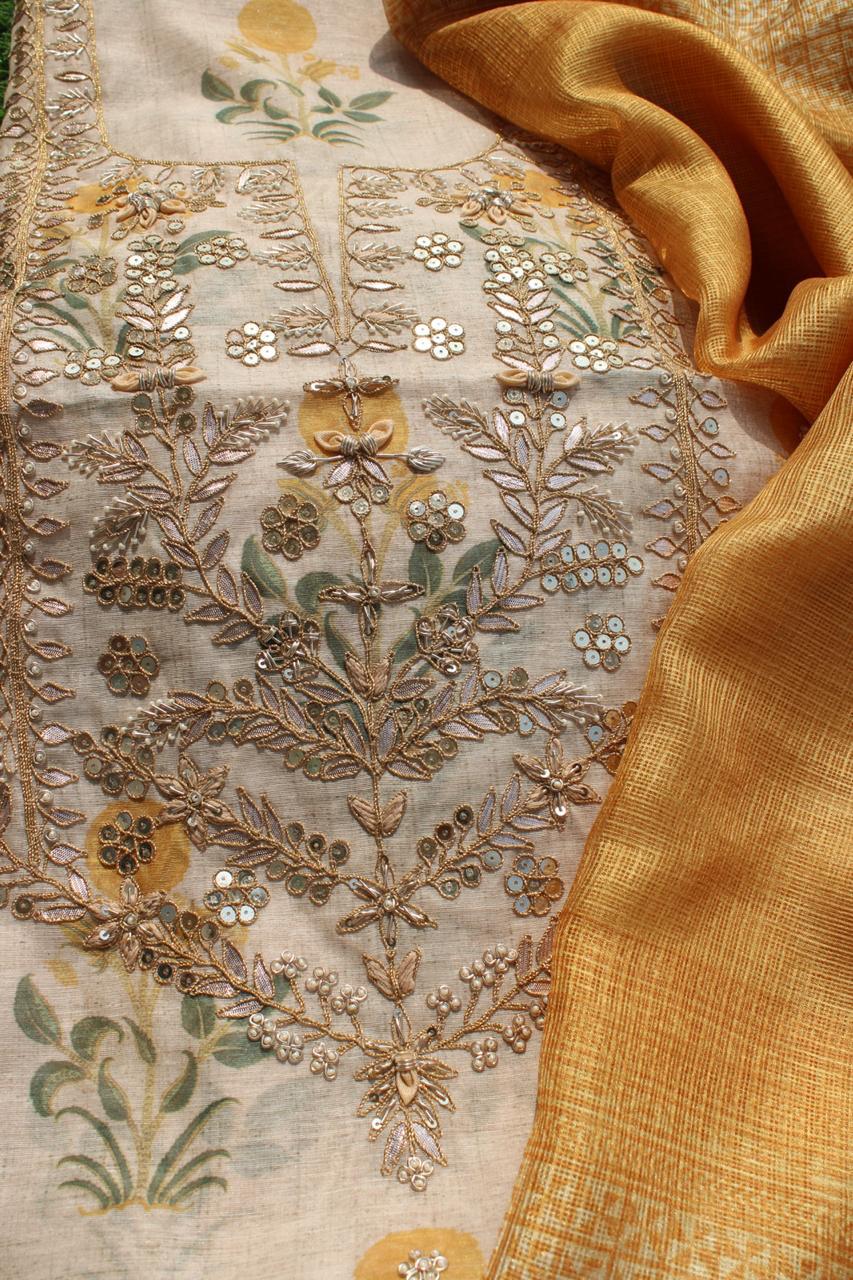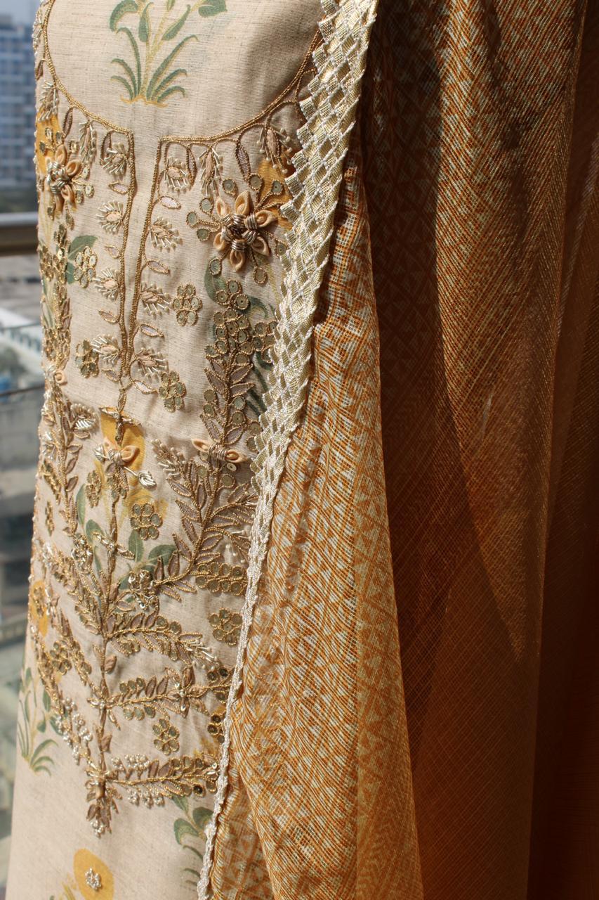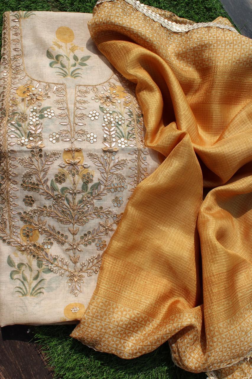 Beautiful chanderi shirt with hand wrk with gota n pearl on neck Small butties all over
