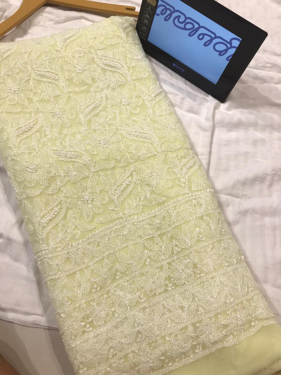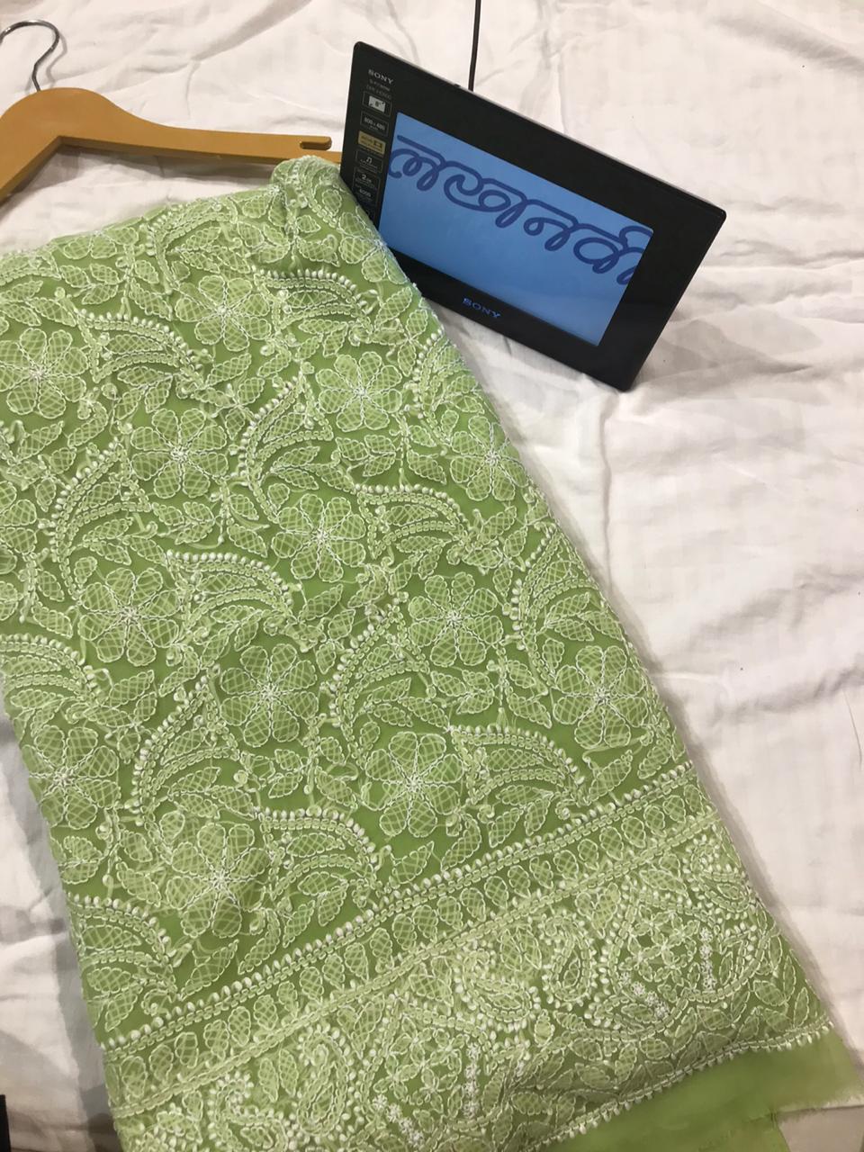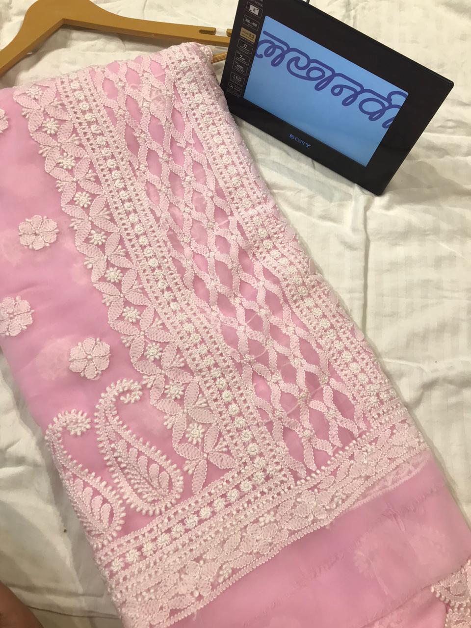 GEORGETE UNSTITCHED SUIT IN CHIKANKARIÂ INCLUDING TOP BOTTOM AND DUPATTA, TOTAL FABRIC 7 METRE