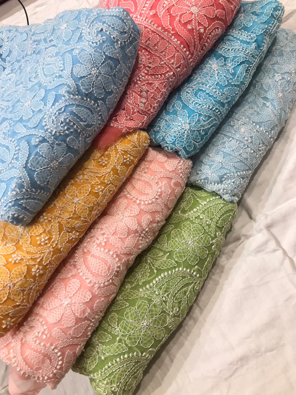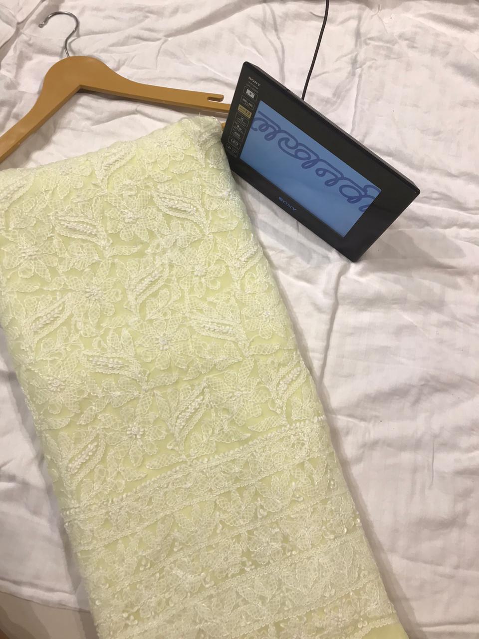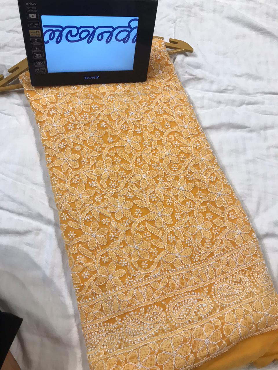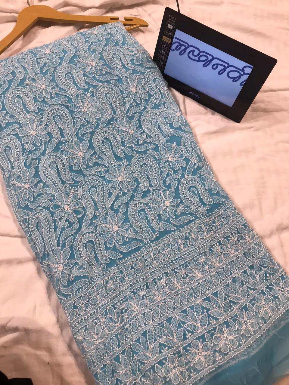 GEORGETE UNSTITCHED SUIT IN CHIKANKARIÂ INCLUDING TOP BOTTOM AND DUPATTA, TOTAL FABRIC 7 METRE