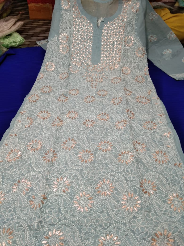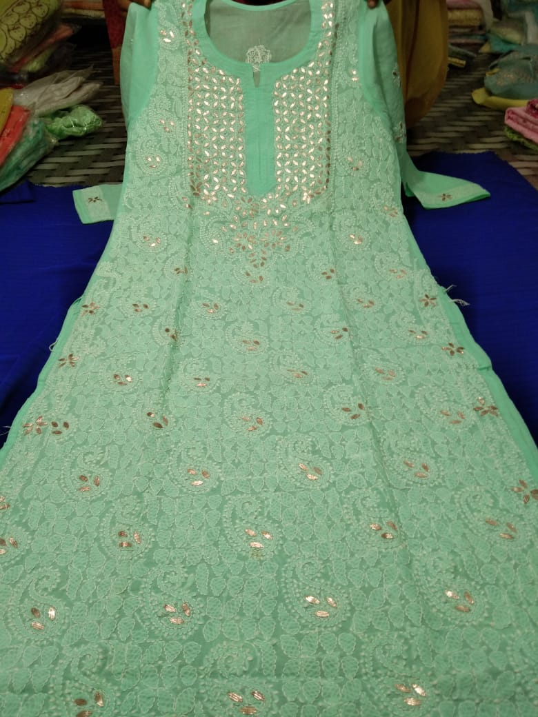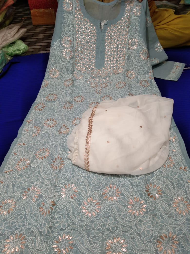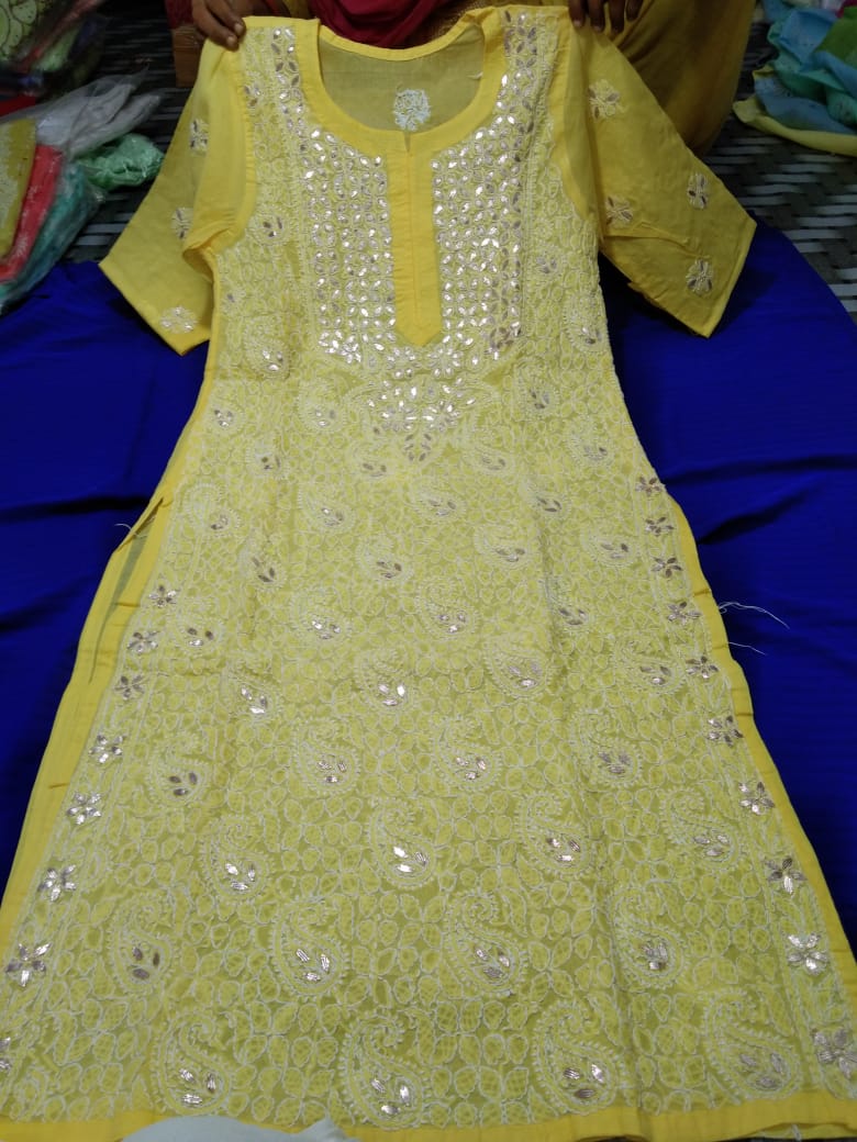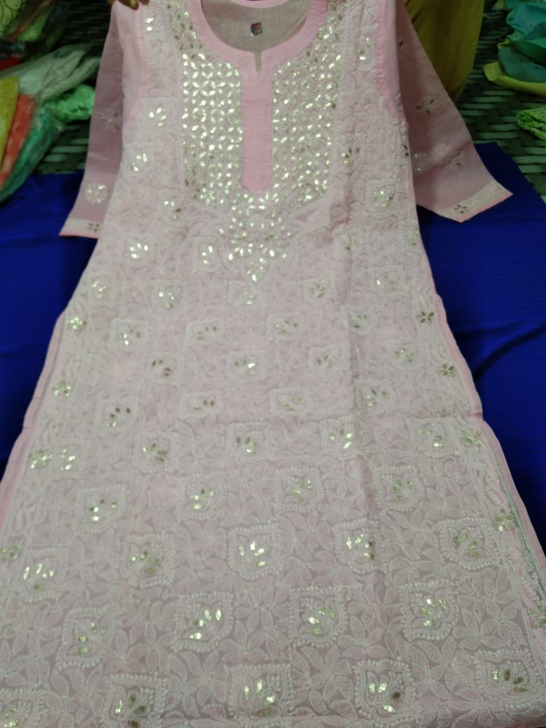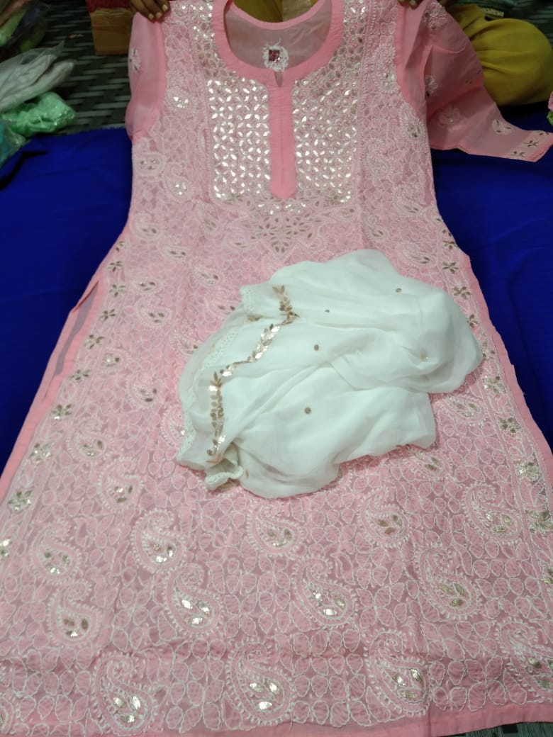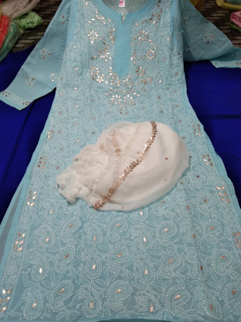 Very beautiful Cotton Gota chikankari kurta, Size available 38 to 44 With duppata gota patti Length 46.