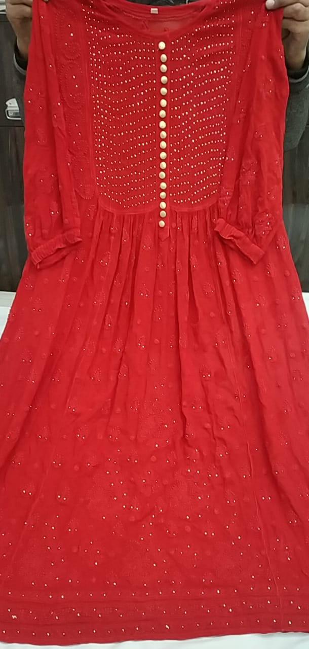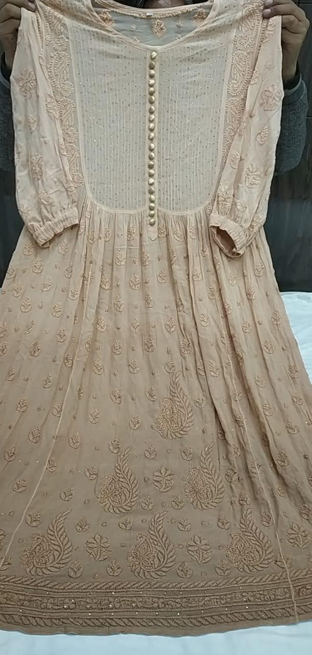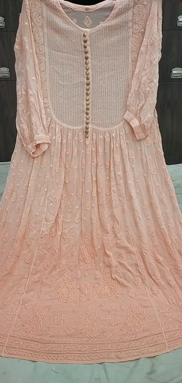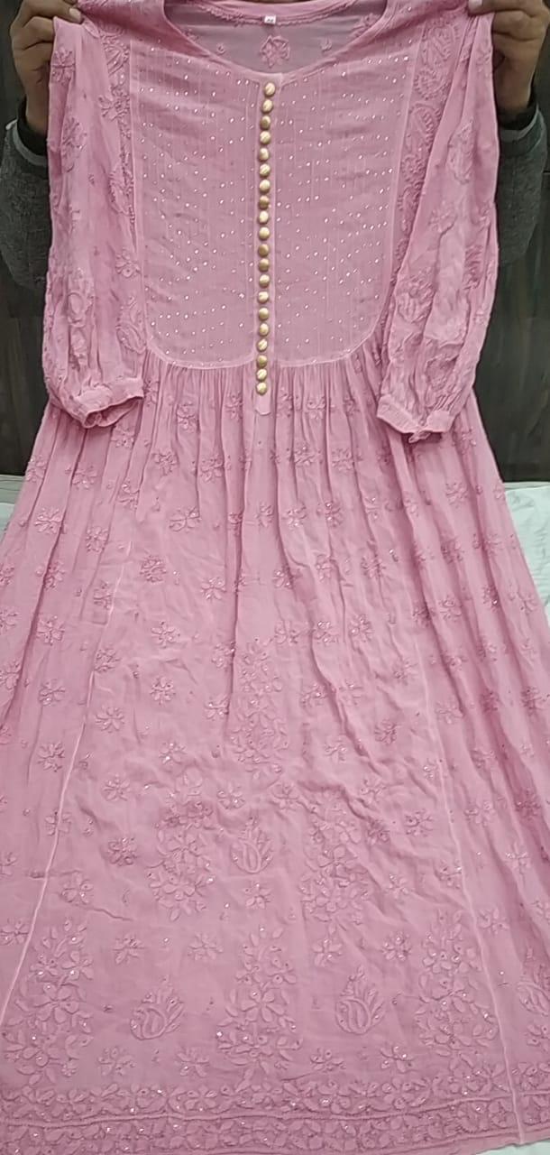 Pure viscose georgette full dyeable best of chikankari handwork lucknowi gowns with mukaish work,Sizes 38 to 46 available.