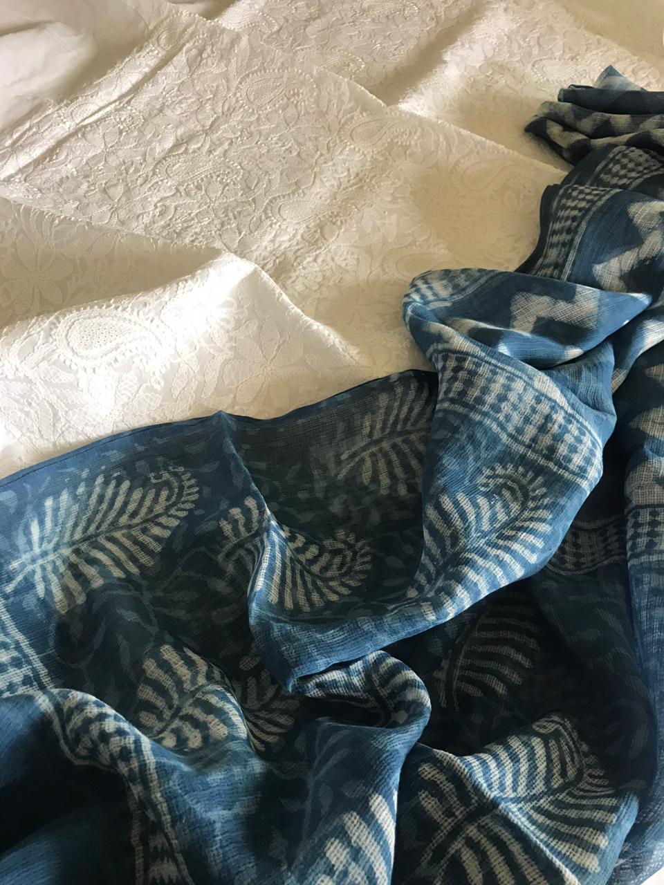 Pure cotton Chikankari hand embroidery kurta teamed with pure *#kota #cotton* kurta with *#indigo #dabu* *#handblock* print!!