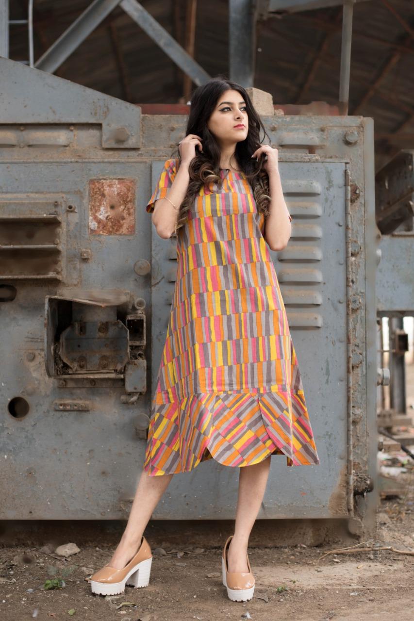 Material cotton, Length 40 inch, Colour Blue / Yellow, With belt Xs to xxl available