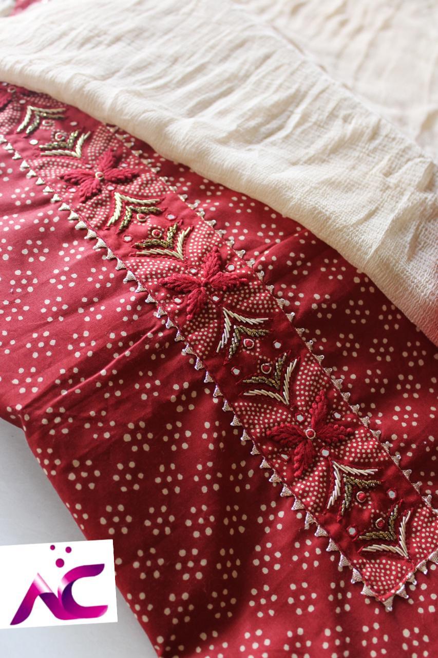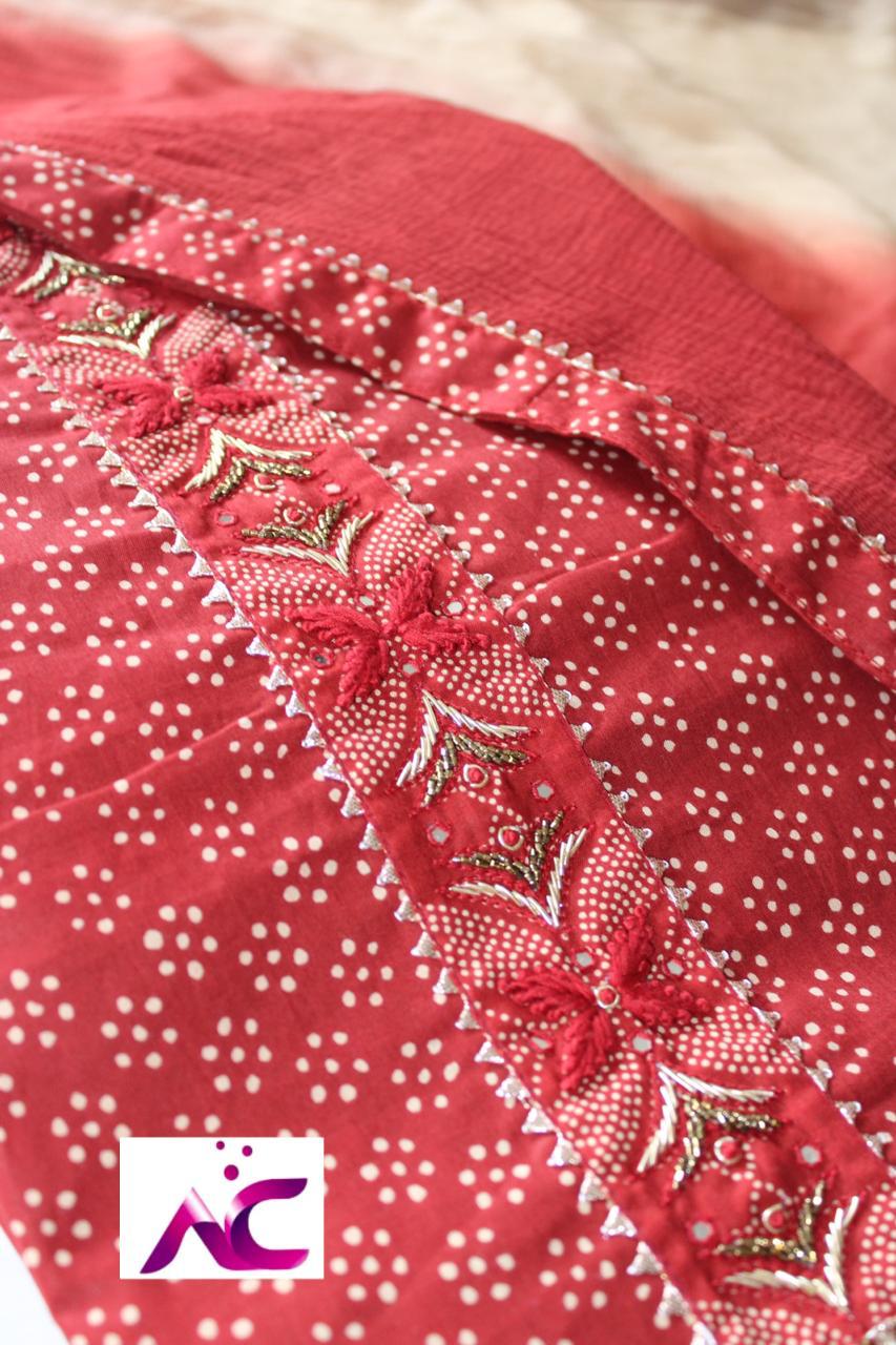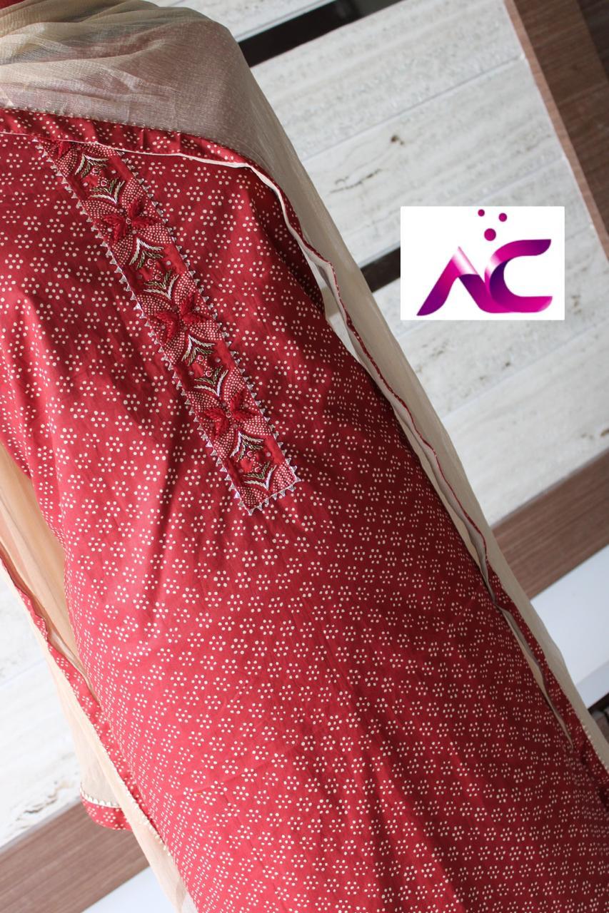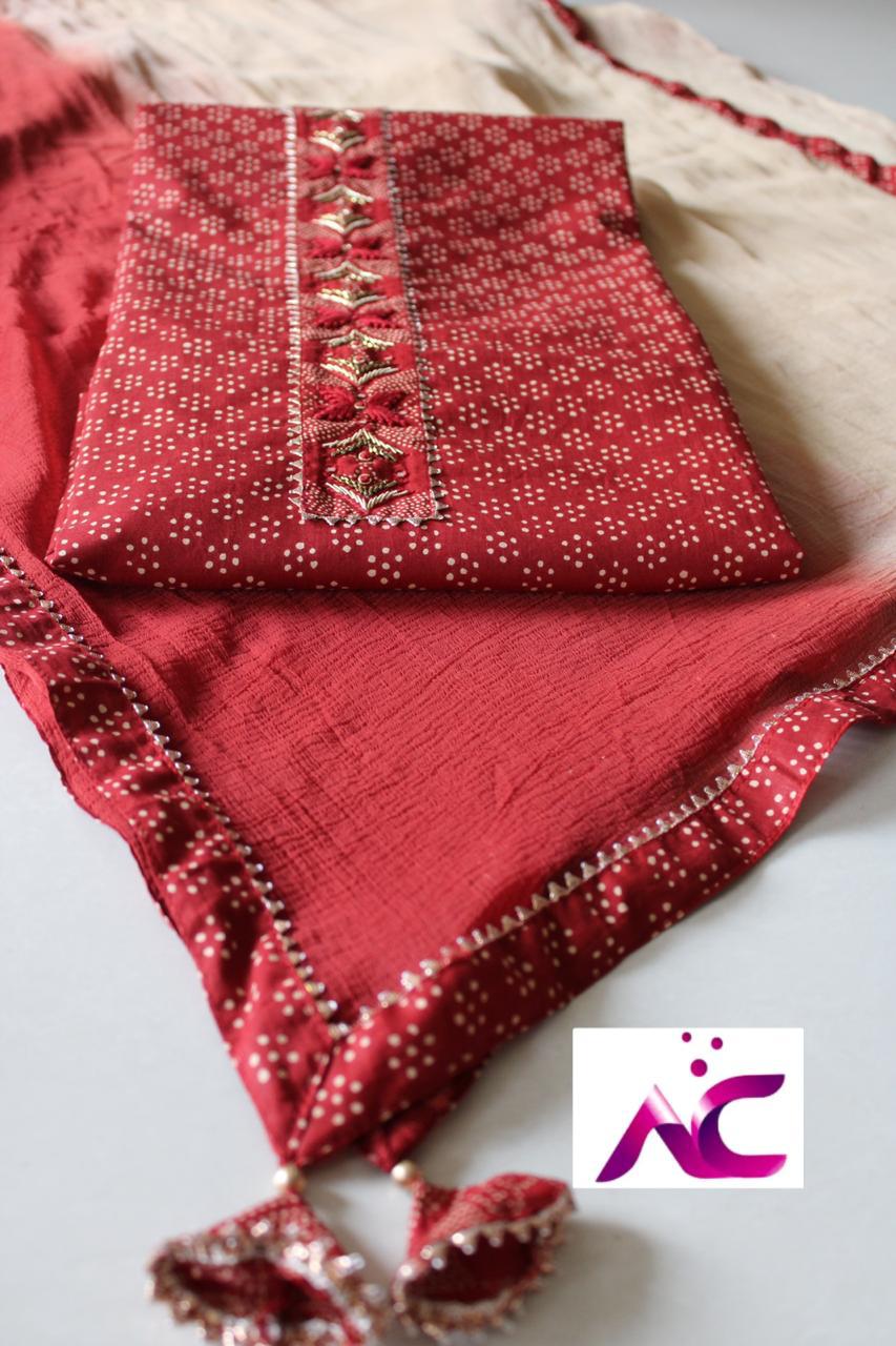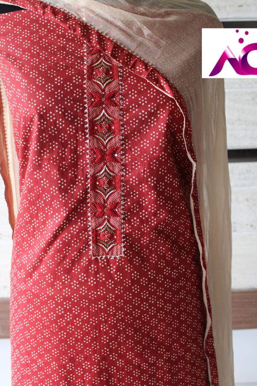 Very soft beautiful polka dots cotton shirt with handwrk on neck??, Same cotton polka dots bottom??,Chiffon double shaded dupatta with four sides taping n tassels??