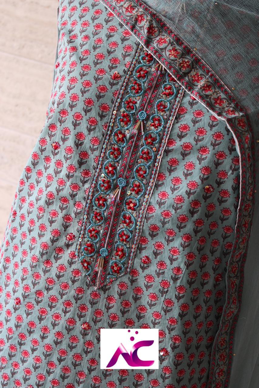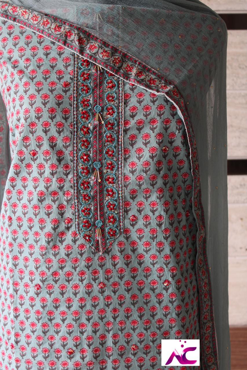 Cotton printed suits with hand work.