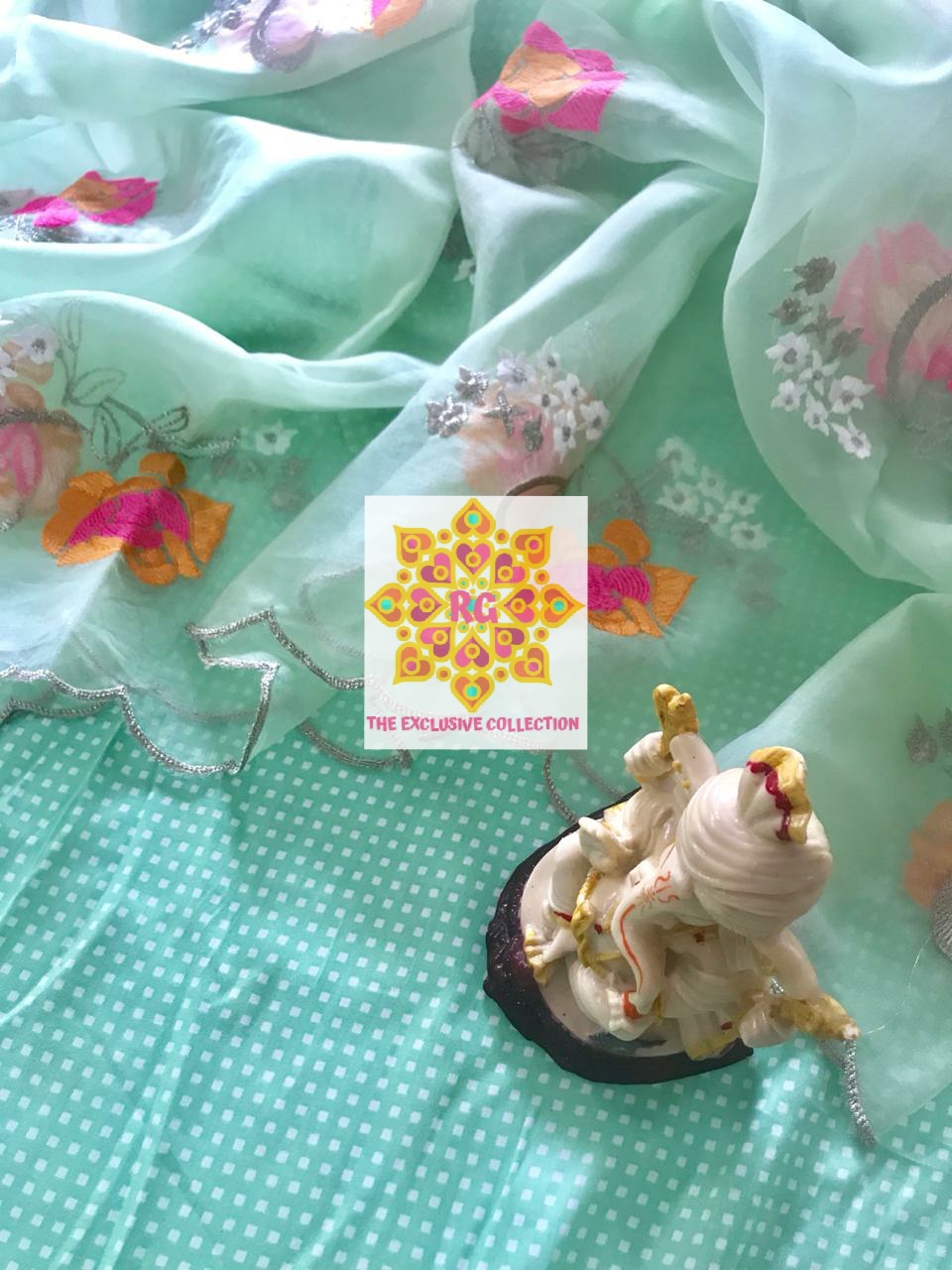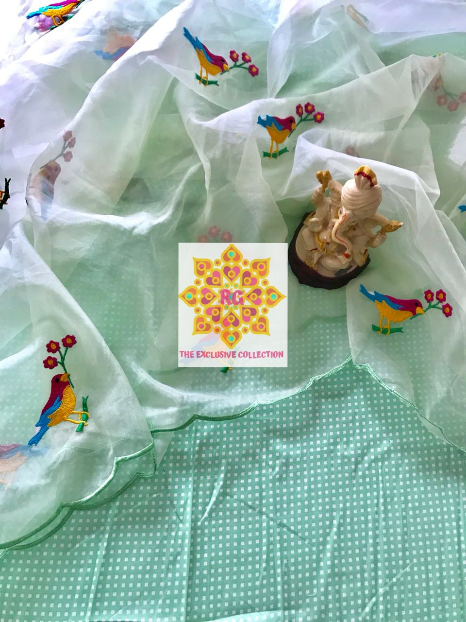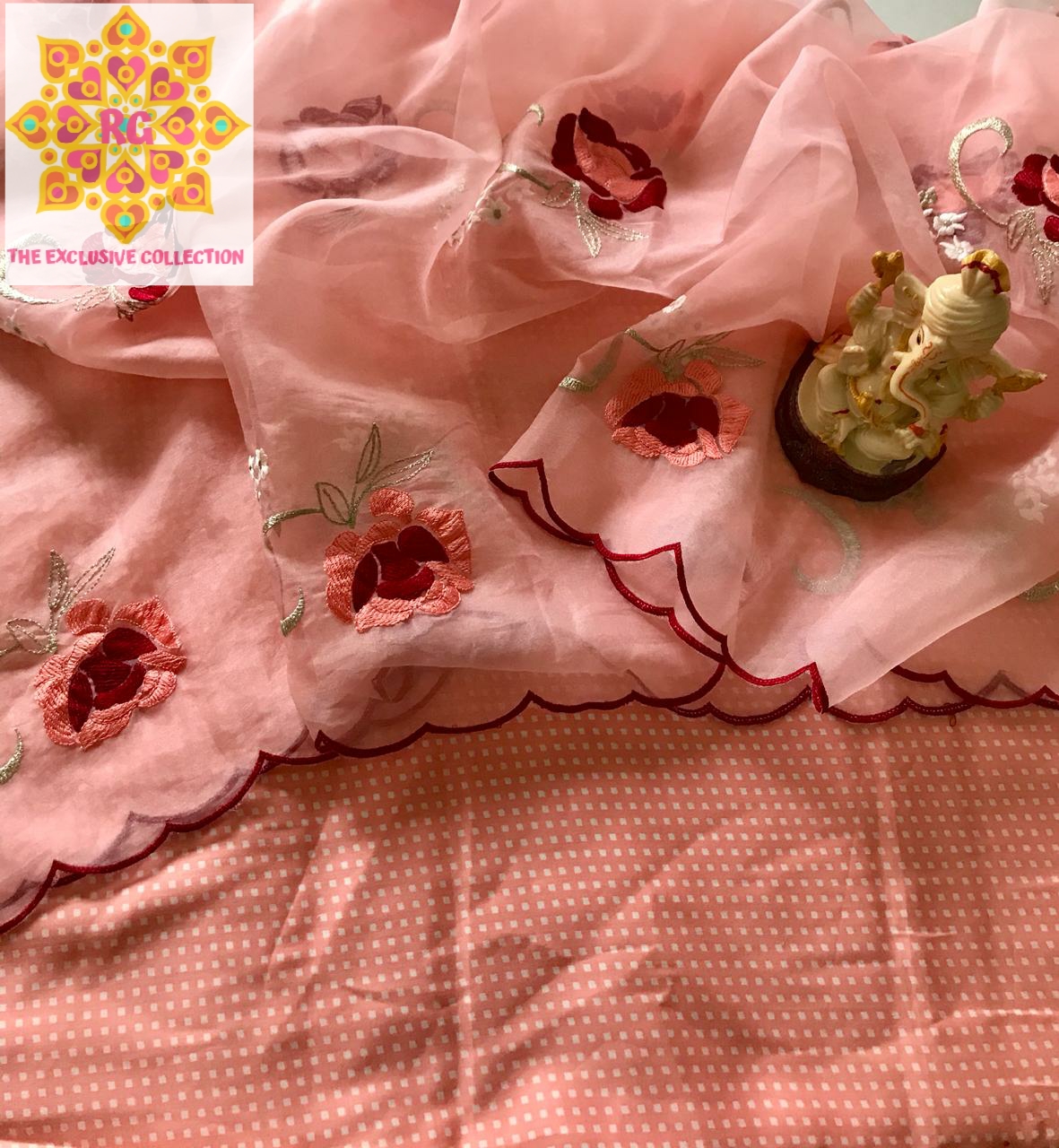 Pure cotton suit embroidered organza dupptta Full suit (5mtrs)& duppptta.