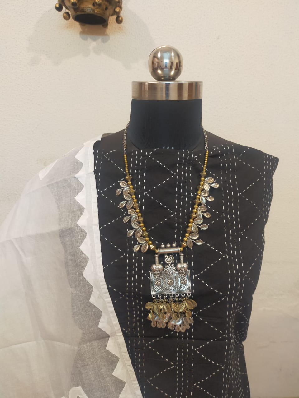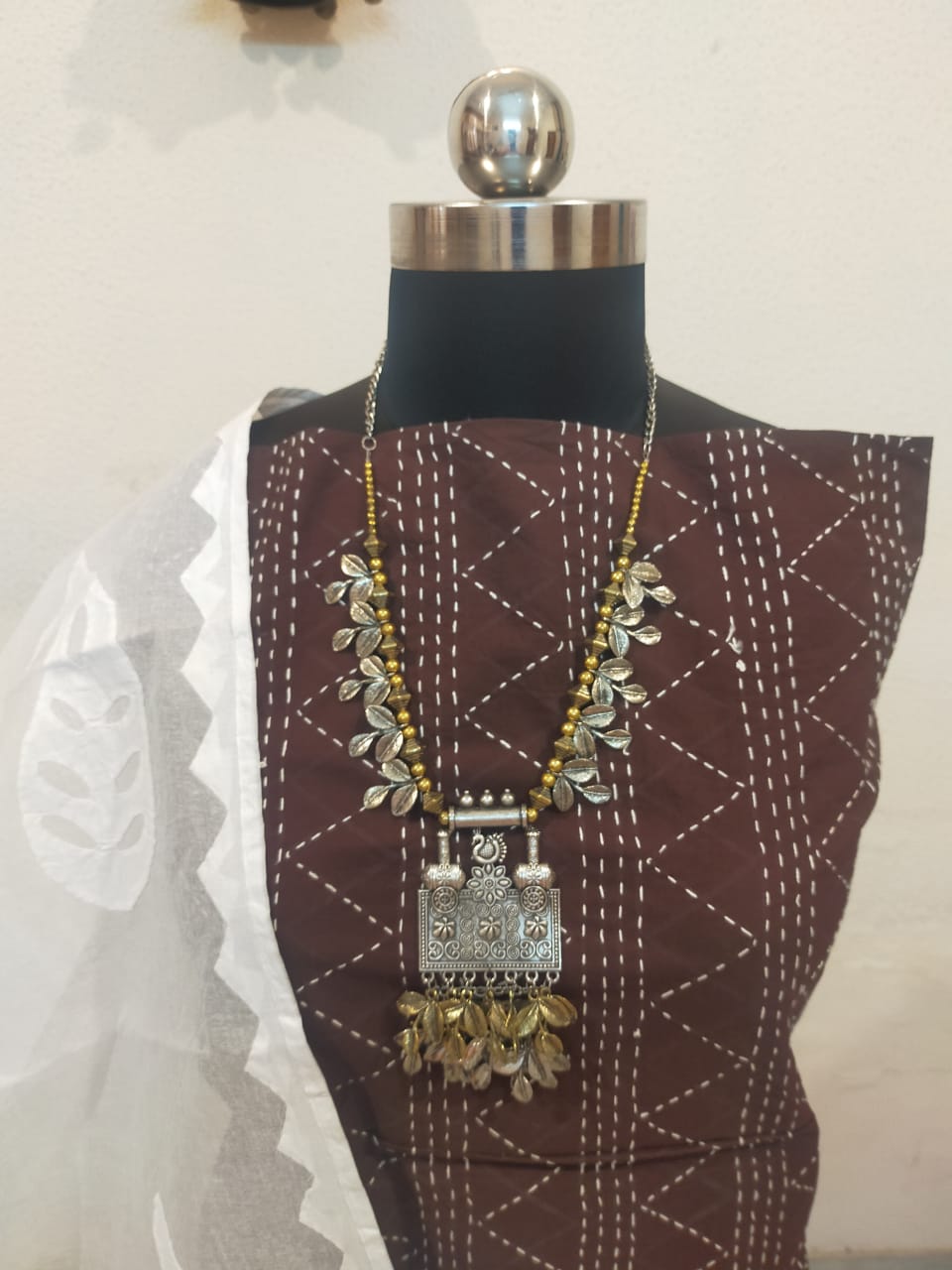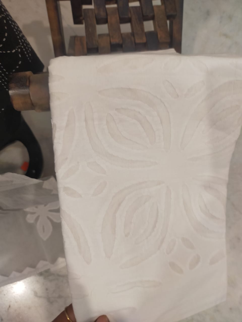 Restocked….. Pure cotton top with anchor thread work on front,Pure cotton applique work dupatta n pure cotton applique work bottom, 2.5 Mt each