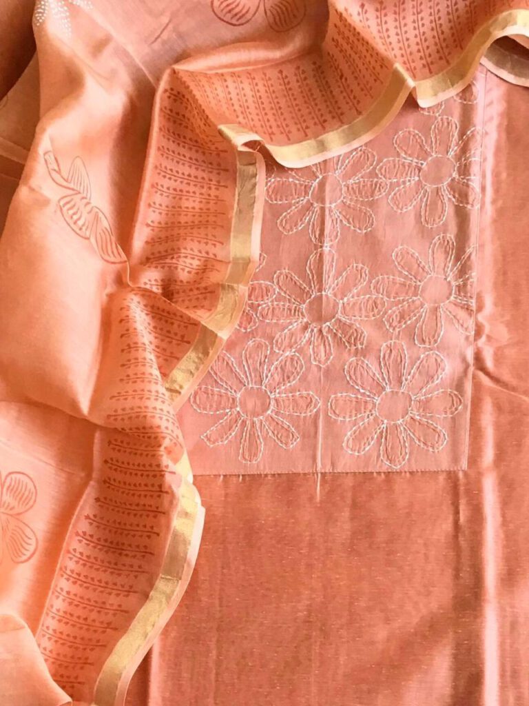 Chanderi hand work suits Glace cotton embroidered suits Crepe top fabric with handblock print dupatta. Georgette dress materials Crepe suits Cotton silk suits. Neon floral suits. Embroidered cotton suits Cotton chanderi embroidered suits. Cotton chanderi embroidered suits. « Previous 1 … 3 4 5 6 7 … 16 Next »