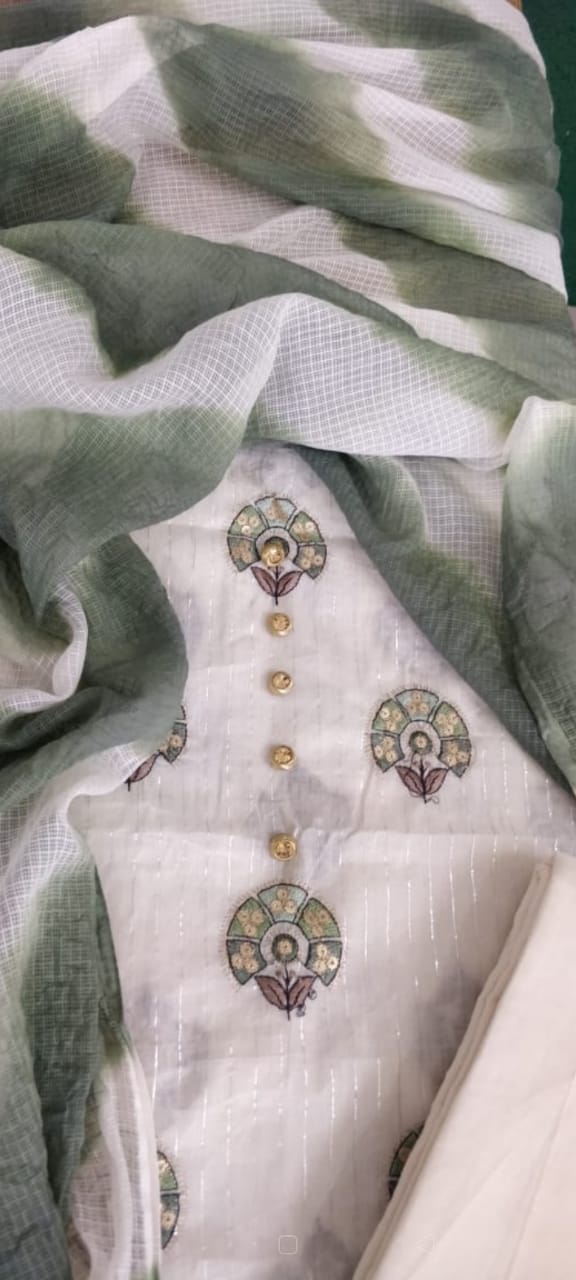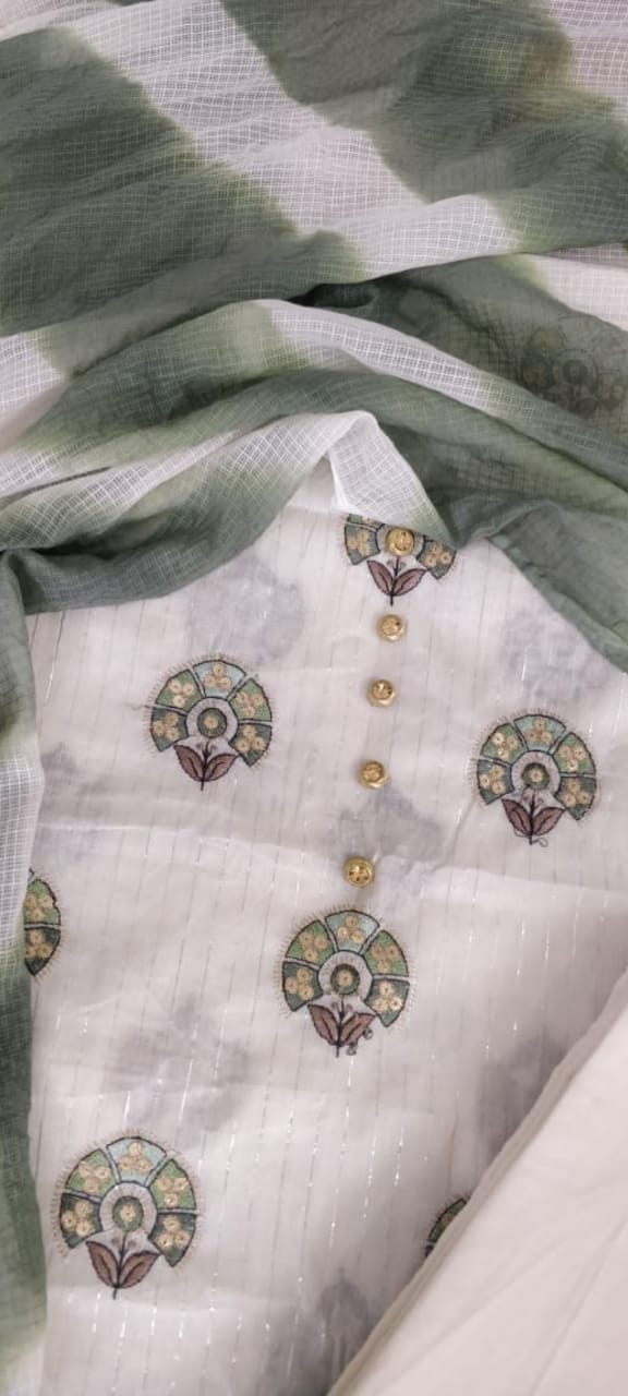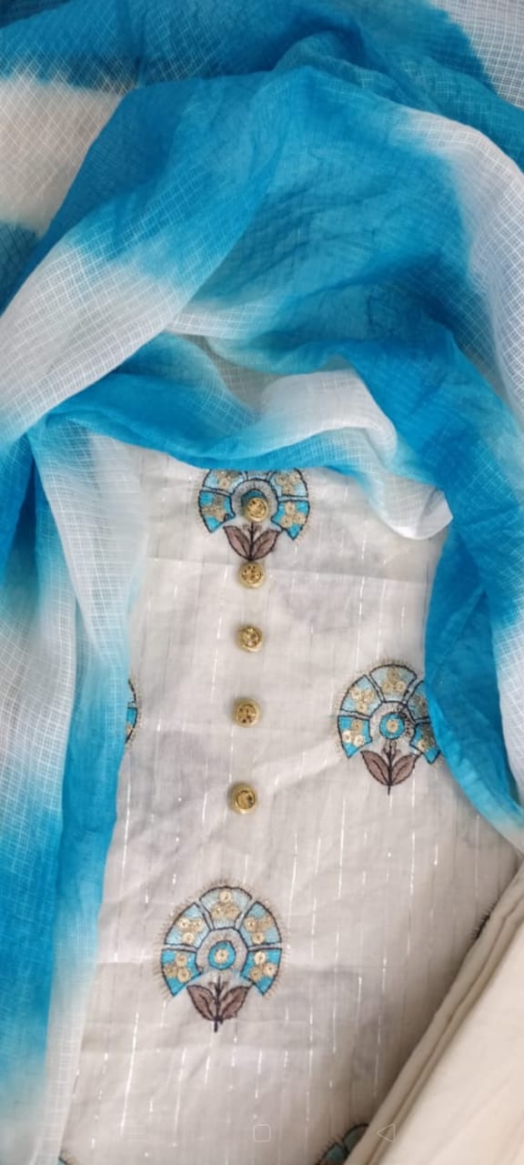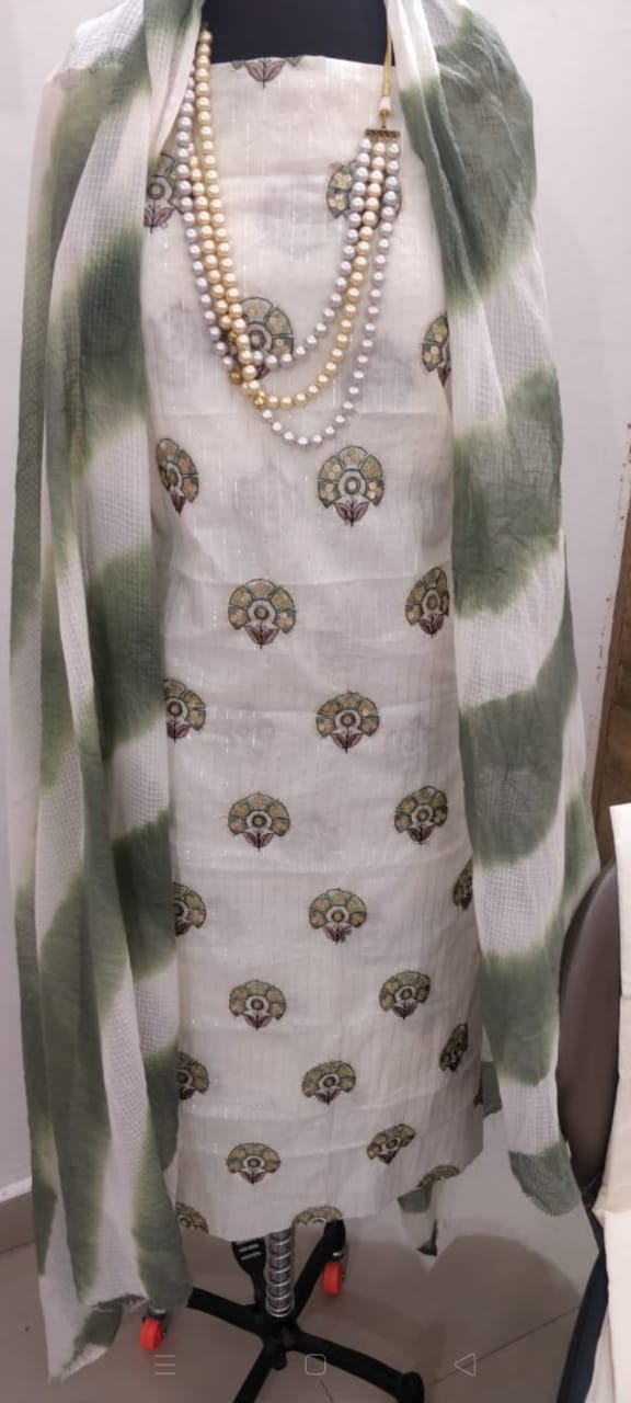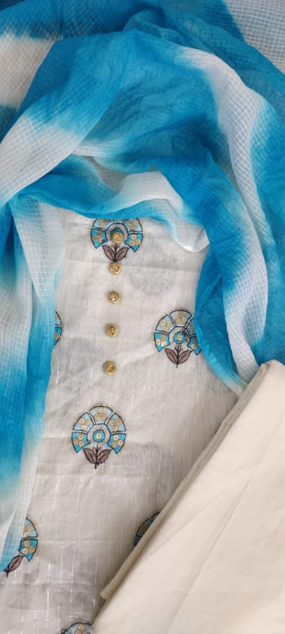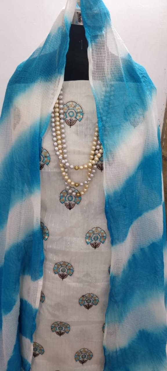 Embroided kora cotton Top Lurex stripes, kota lehariya Dupatta with plain cotton bottom