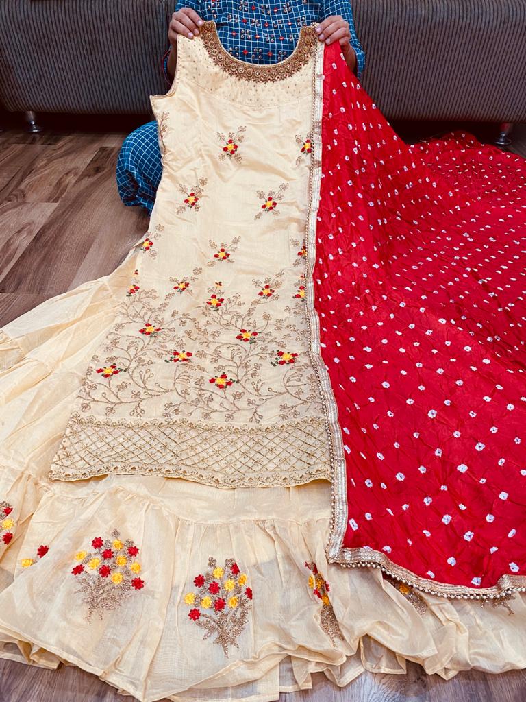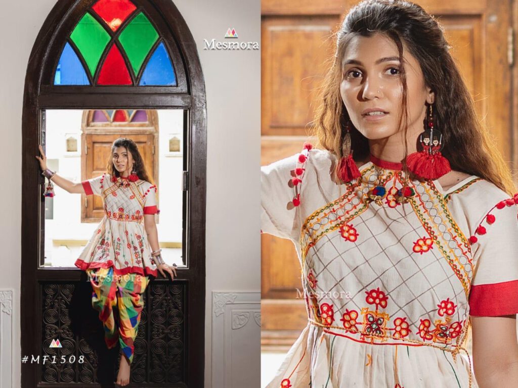 Designer long gowns. Long gown Frock style kurtis . Long gowns. Kedia sets. Cotton kaftans. Funky kaftaans Festive wear Cotton kurti with gota work, skirt and duppatta Classy one piece « Previous 1 2 3 Next »