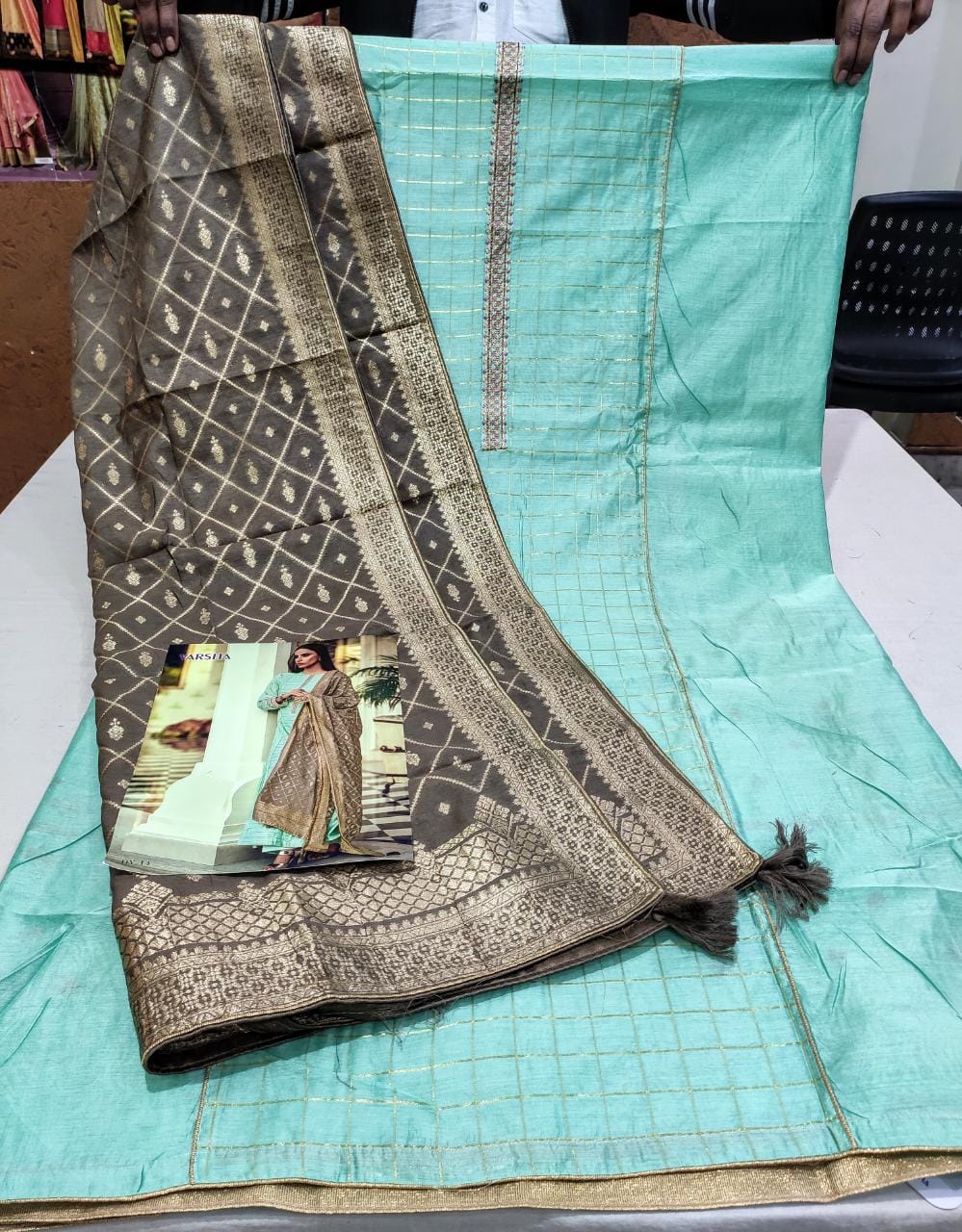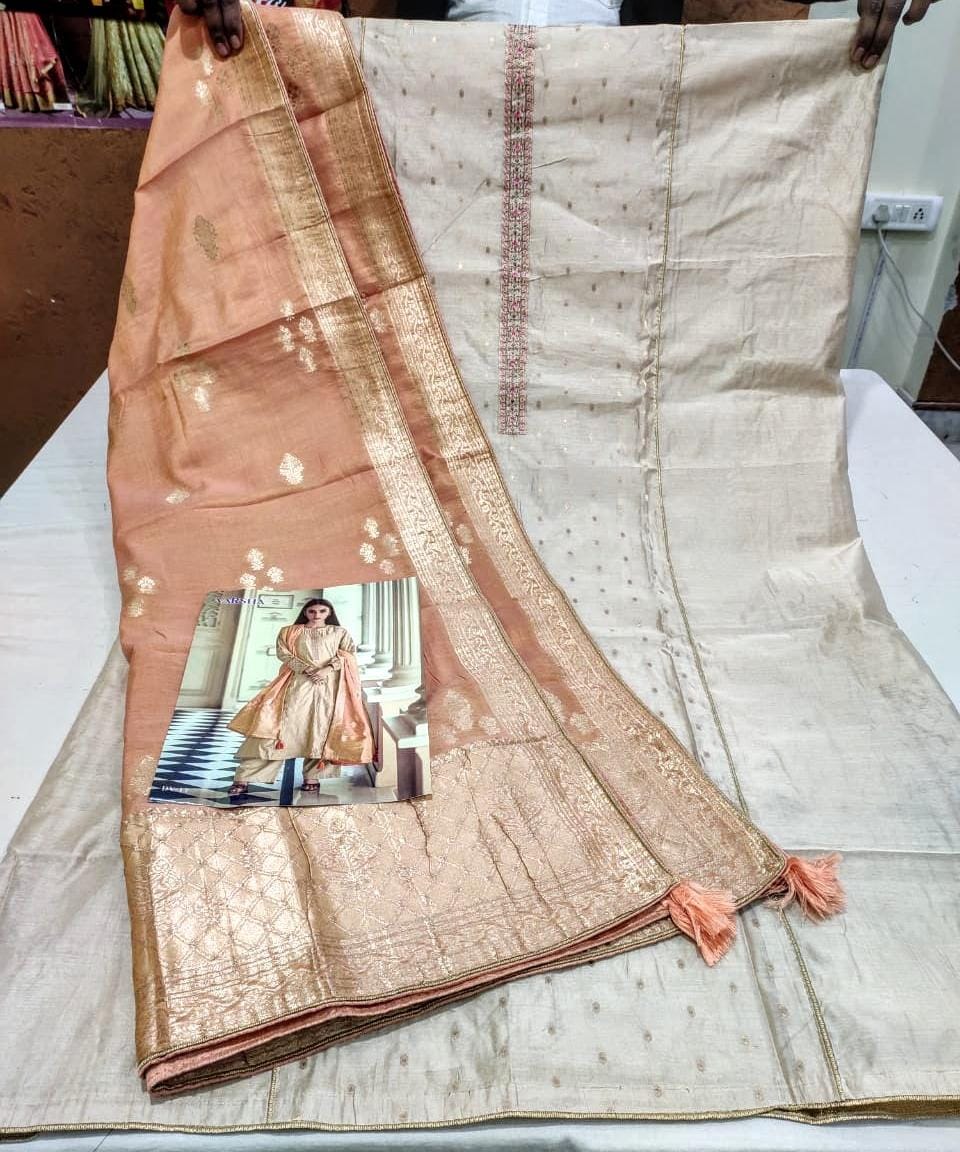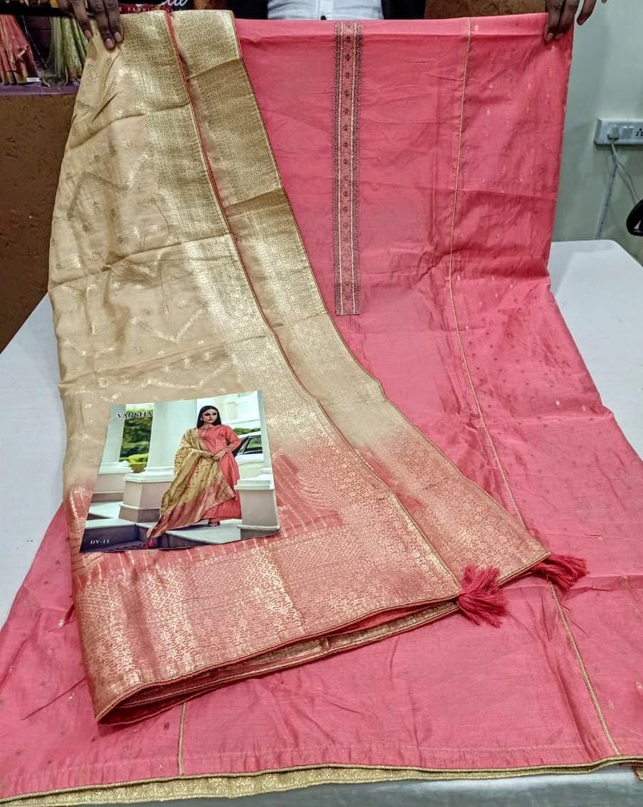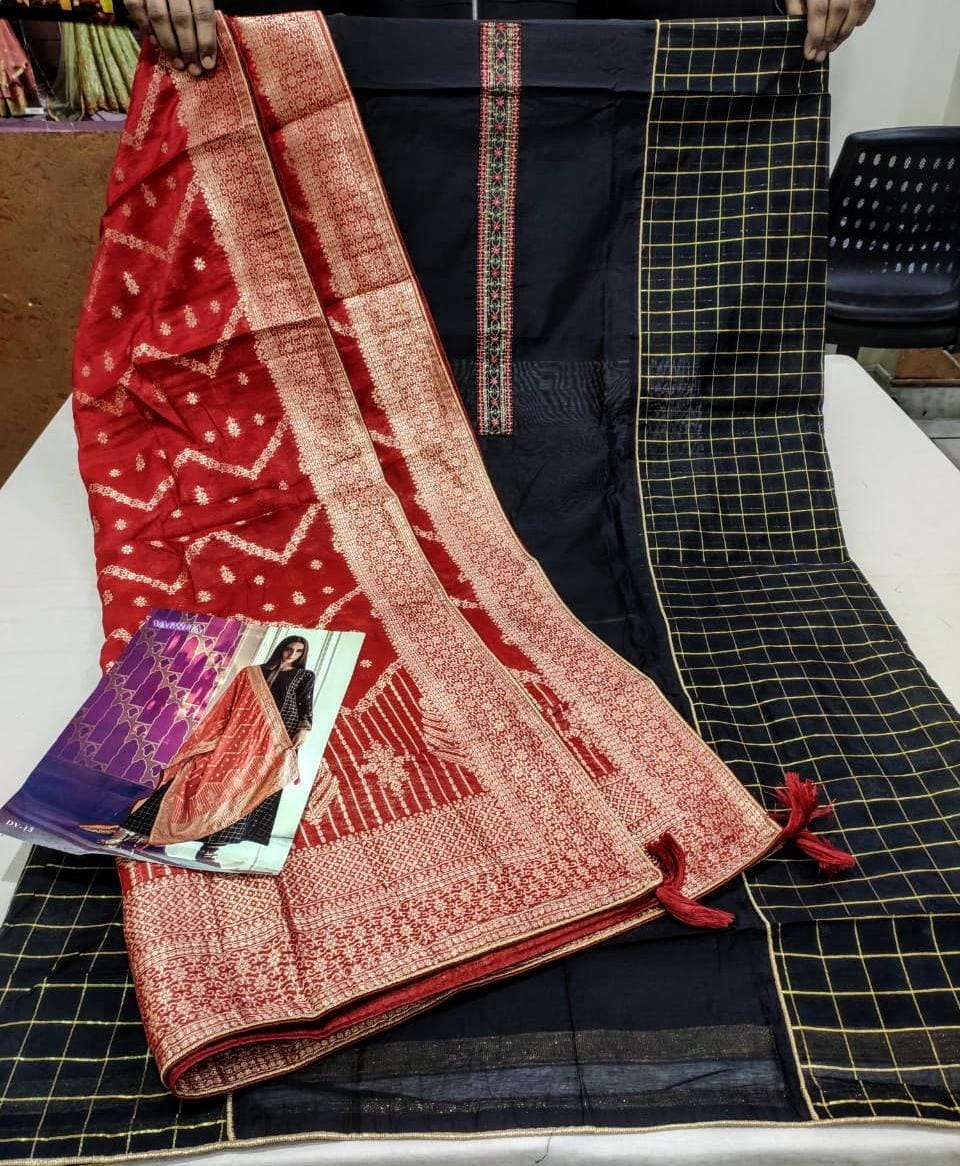 Top-Fancy Fabric. With Embroidered Sleeves. And Inner., Duptta-Bnarasi Weave., Bottom-Superior Cotton Solid.