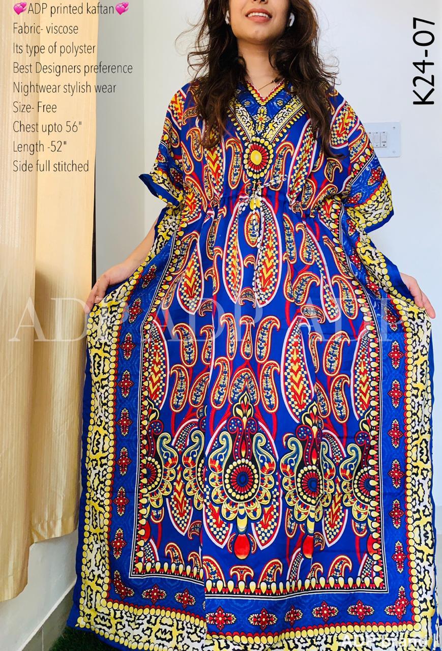 Nightwear stylish wear kaftaan, Perfect night dress, Comfortable and affordable ,Center dori to adjust or not, Size- Free, Chest upto 56″