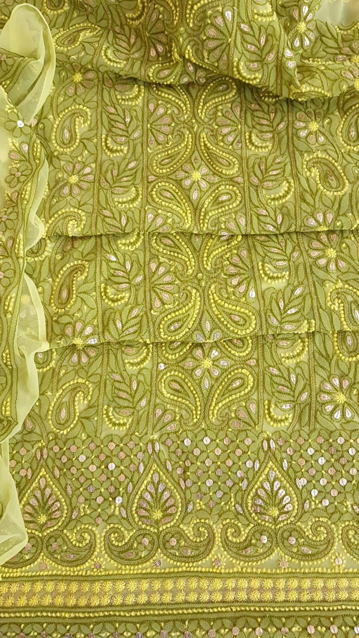 Georgette chikankari 3 pieve suit with amazing gota work & superior quality.