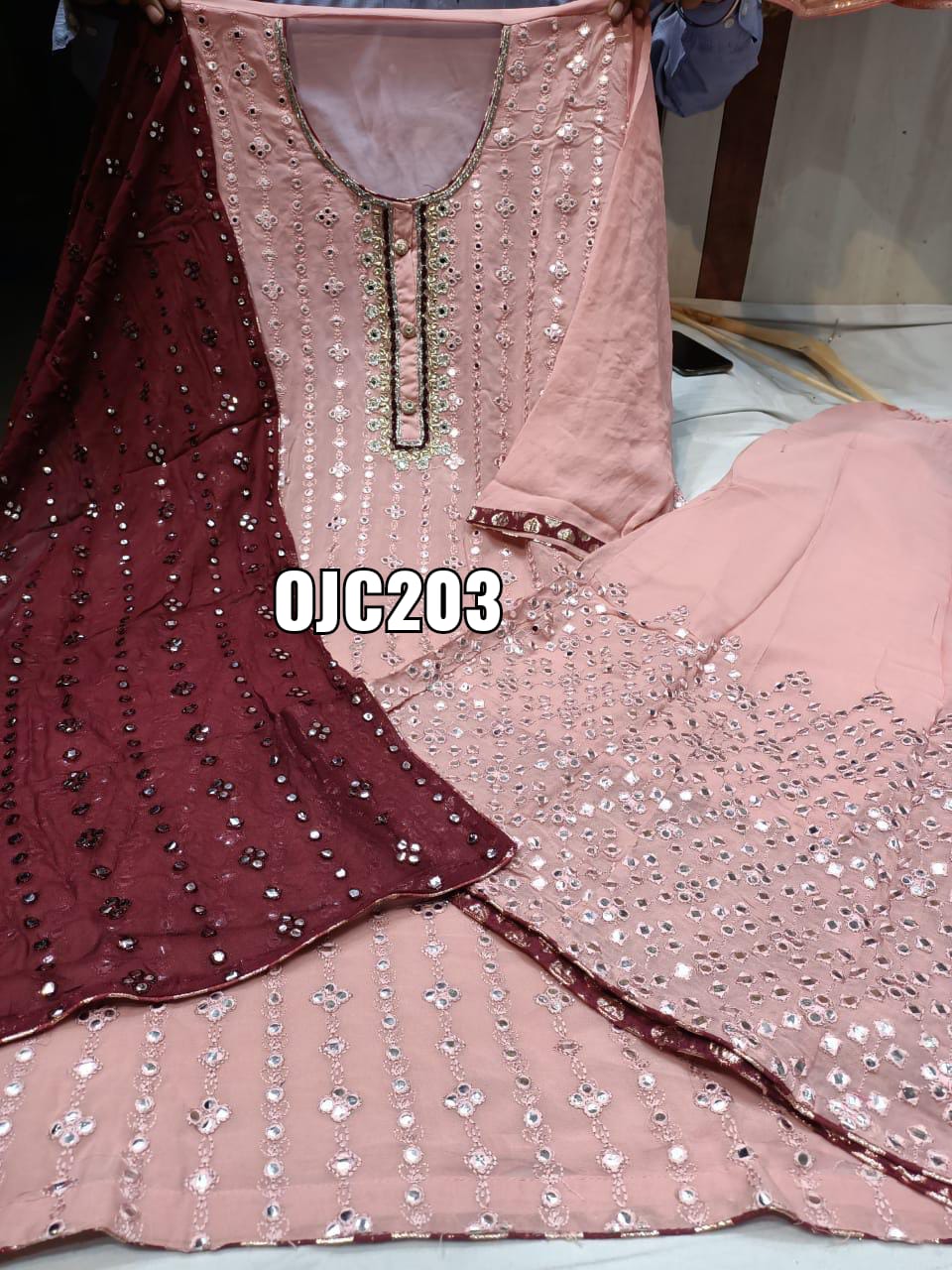 DUPPATTA -:PURE GORGET HEAVY DUPPATTA WITH PATRA WORKÂ BOTTOM STICHED GORGET SHARARA WITH SAME WORK, SIZE SHIRT-48