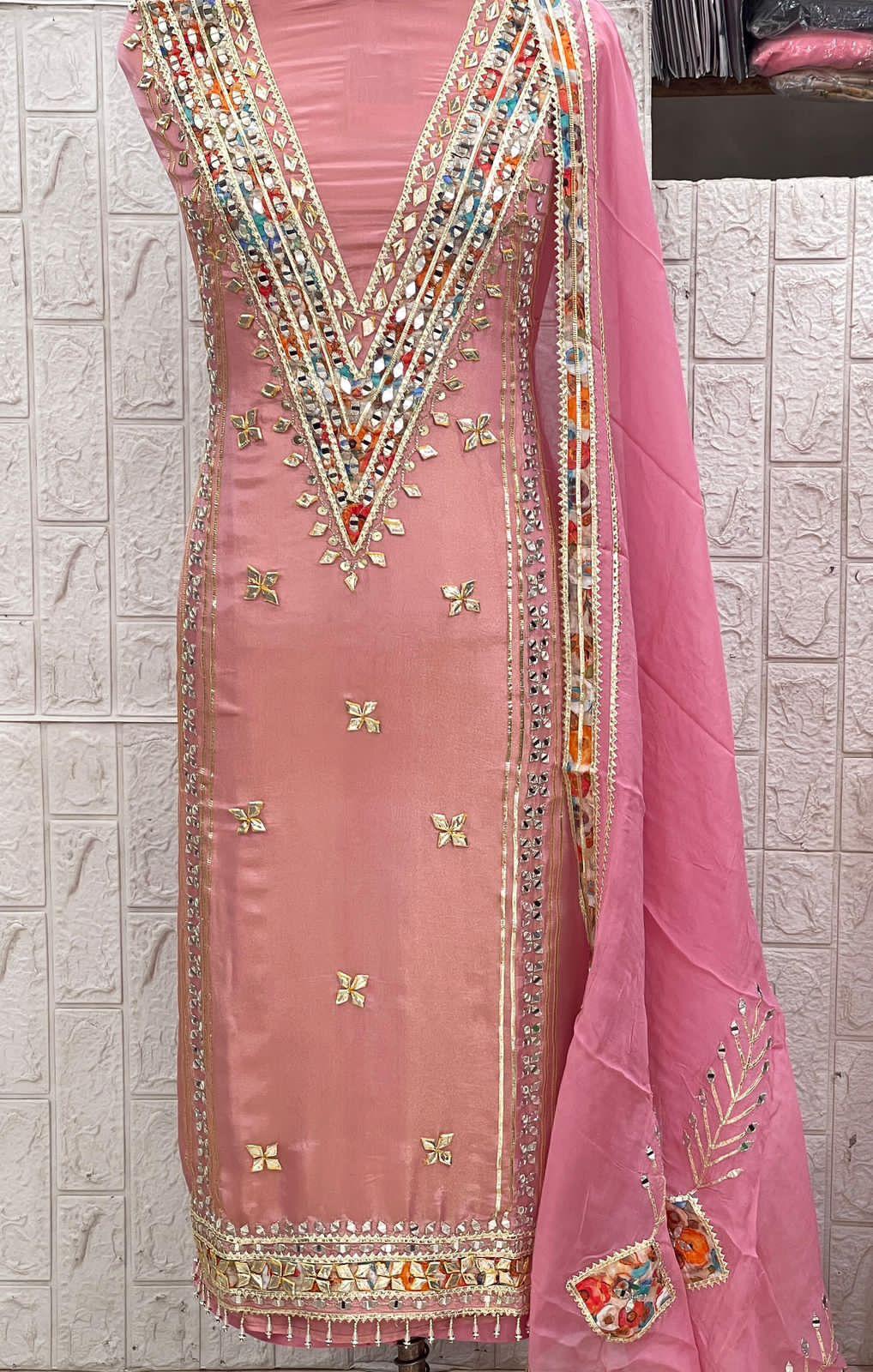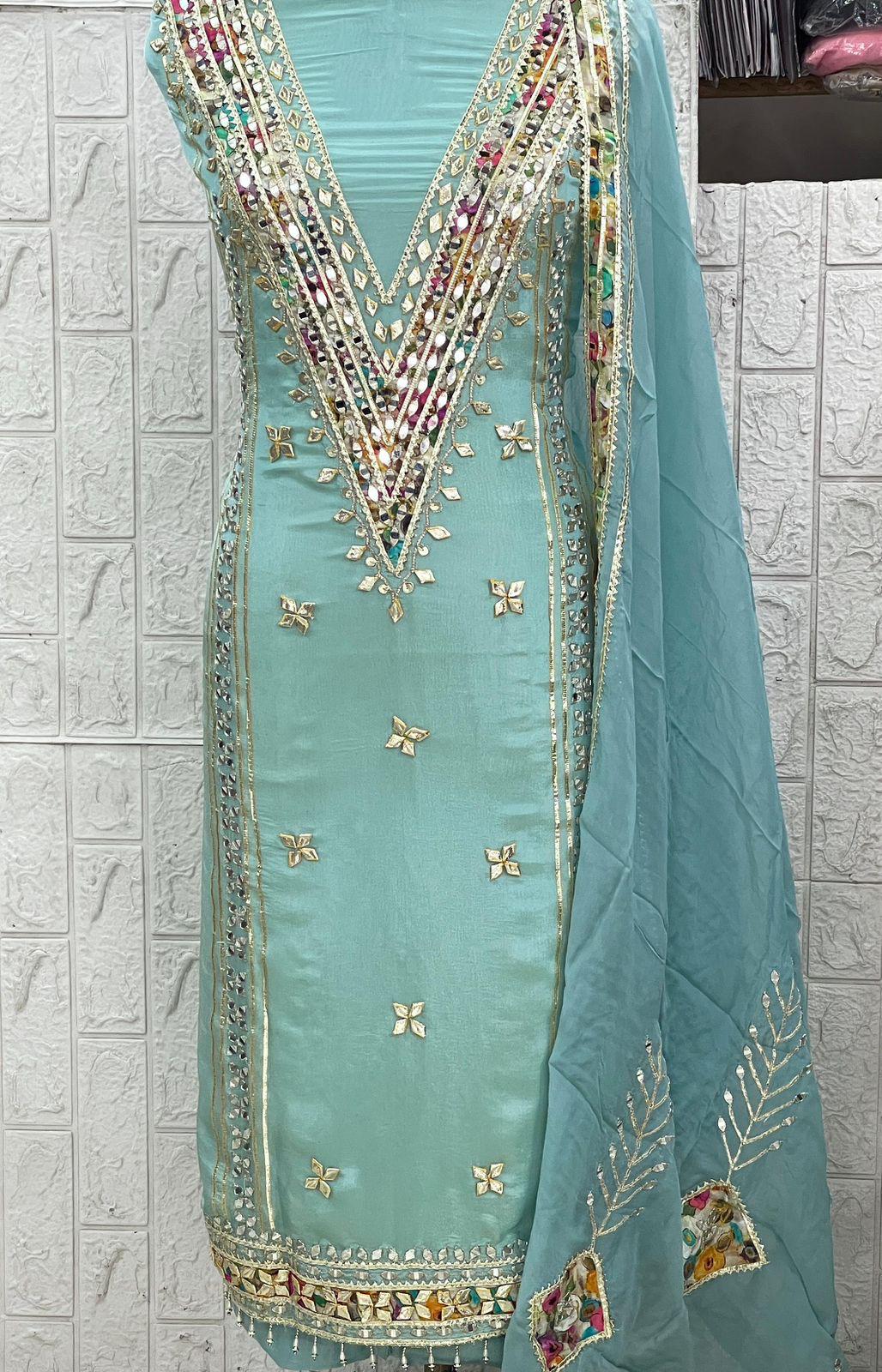 👗Top-Very beautiful gotta patti work on finest tissue shimmer silk top