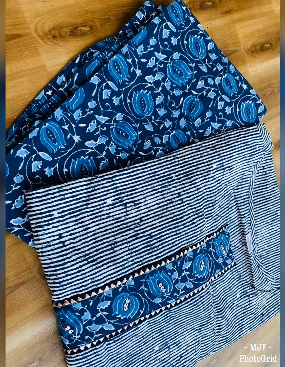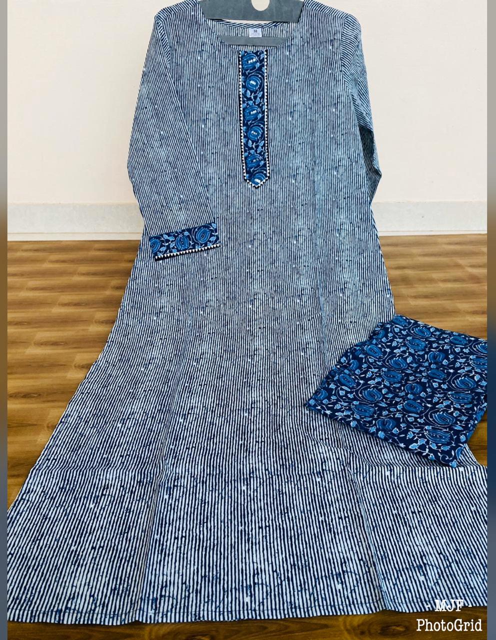 Cotton indigo print kurti with gota paired up with cotton printed plazo…. *Size – 38 to 44.