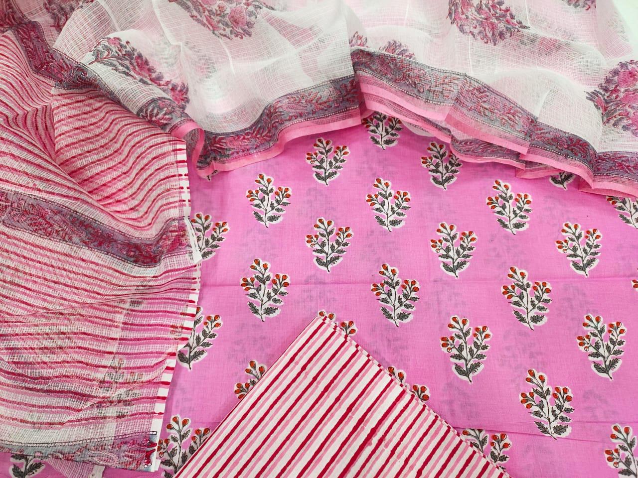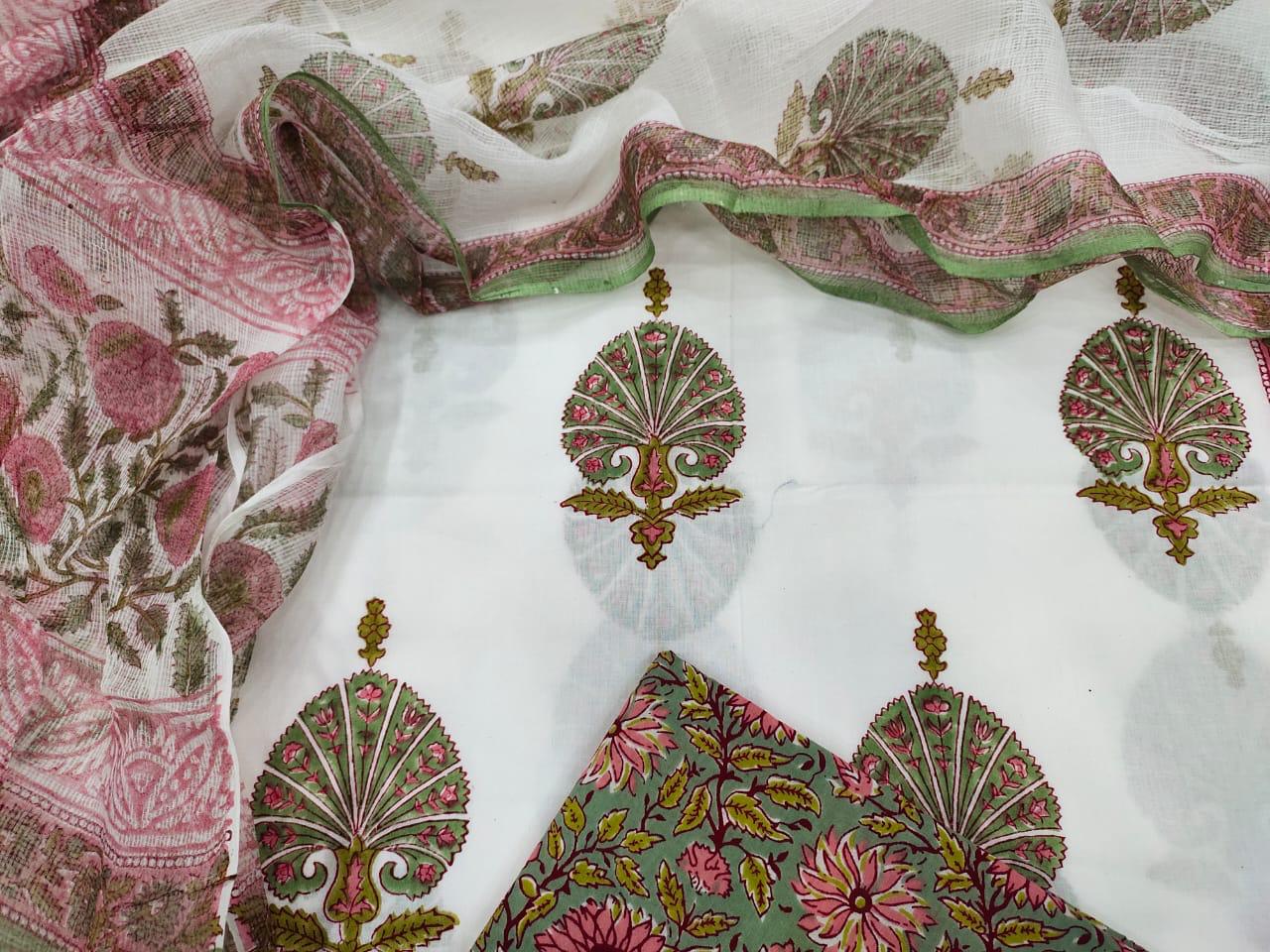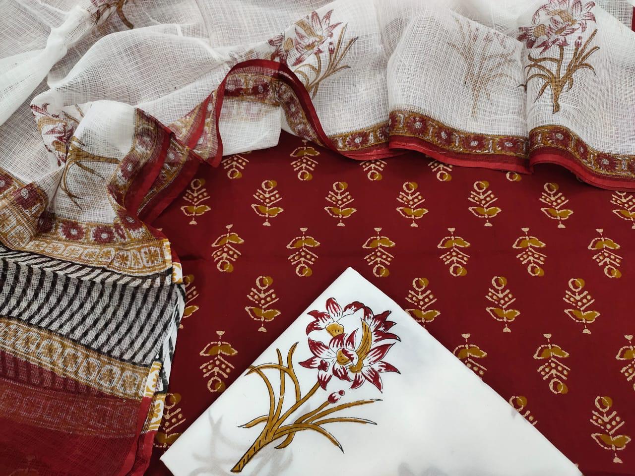 *Handblock Printed Pure kota Doriya Dupatta -2.5 mtrs with *Pure And Soft Handblock Printed Cotton Top-2.5 mtrs an pure And Soft Handblock Printed Cotton Bottom-2.5 mtrs