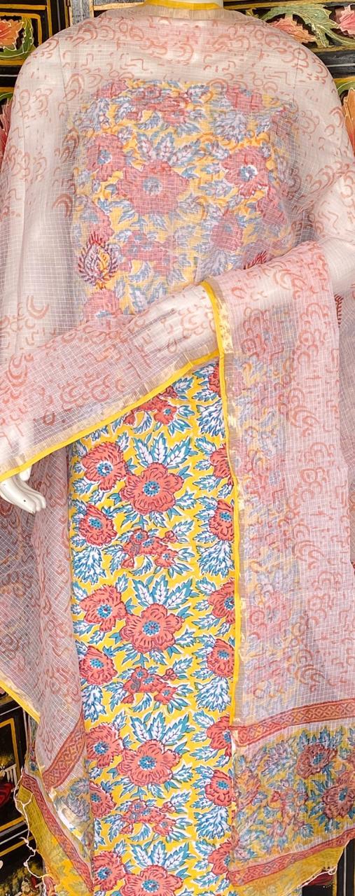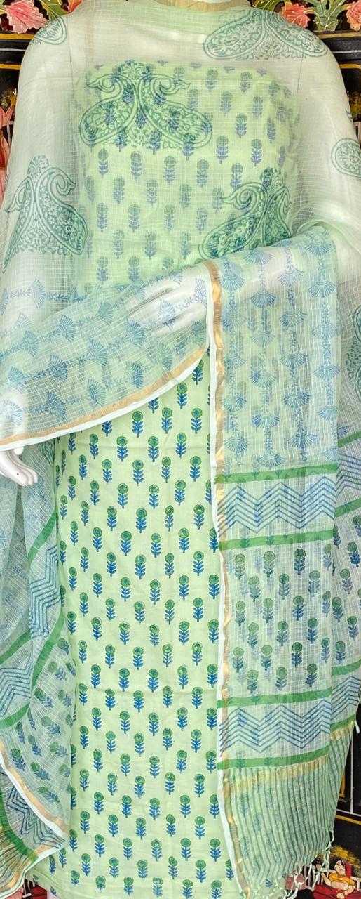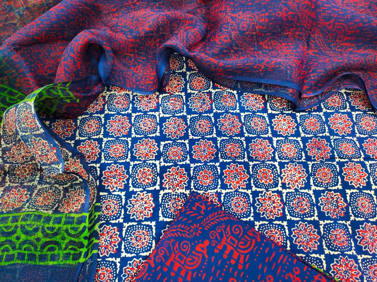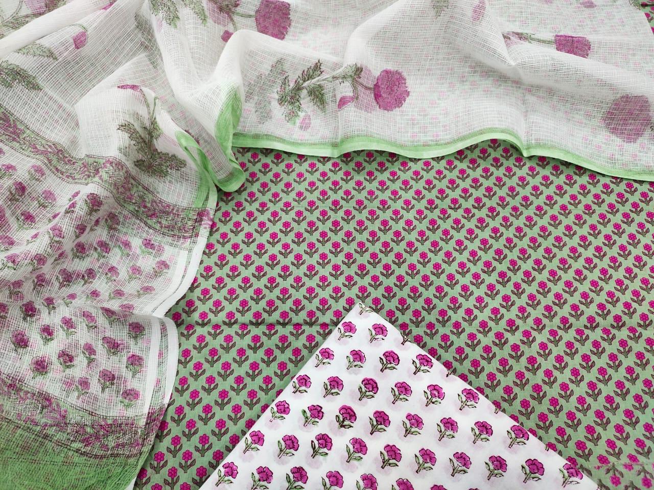 *Handblock Printed Pure kota Doriya Dupatta -2.5 mtrs with *Pure And Soft Handblock Printed Cotton Top-2.5 mtrs an pure And Soft Handblock Printed Cotton Bottom-2.5 mtrs