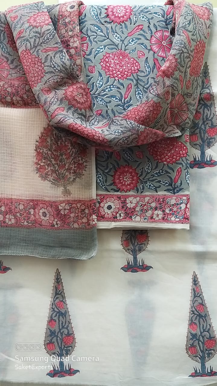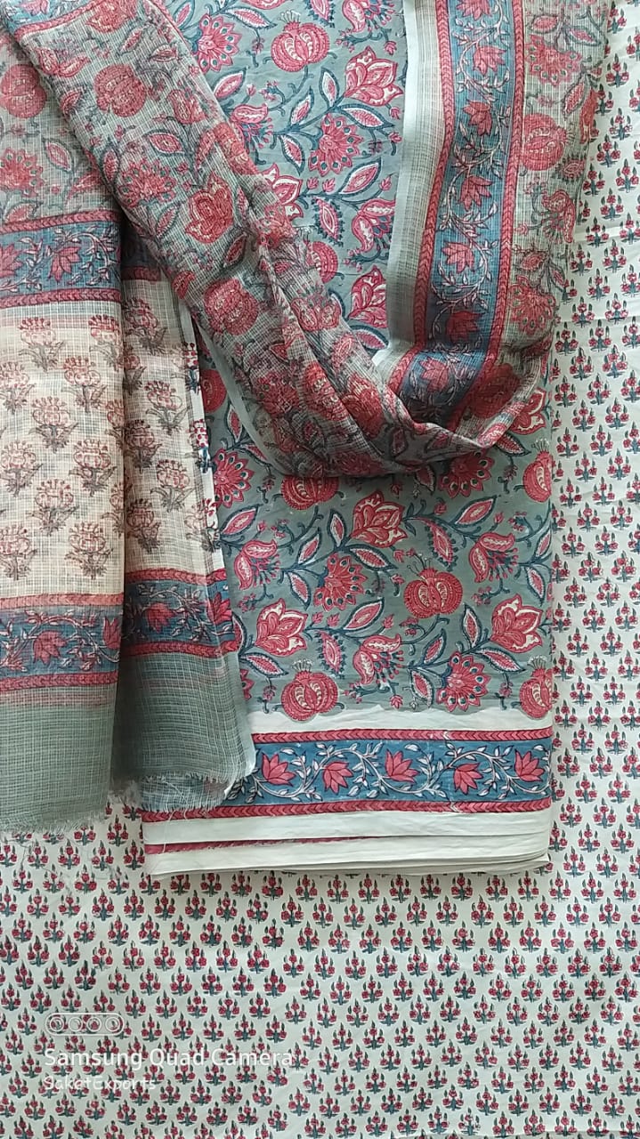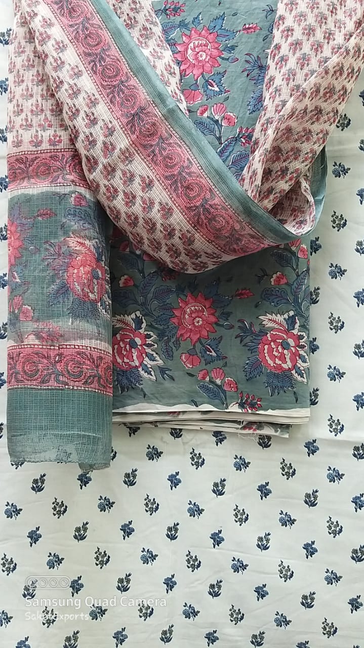 Handblock printed cotton suits with kota duptta set/  chanderi duptta set.
