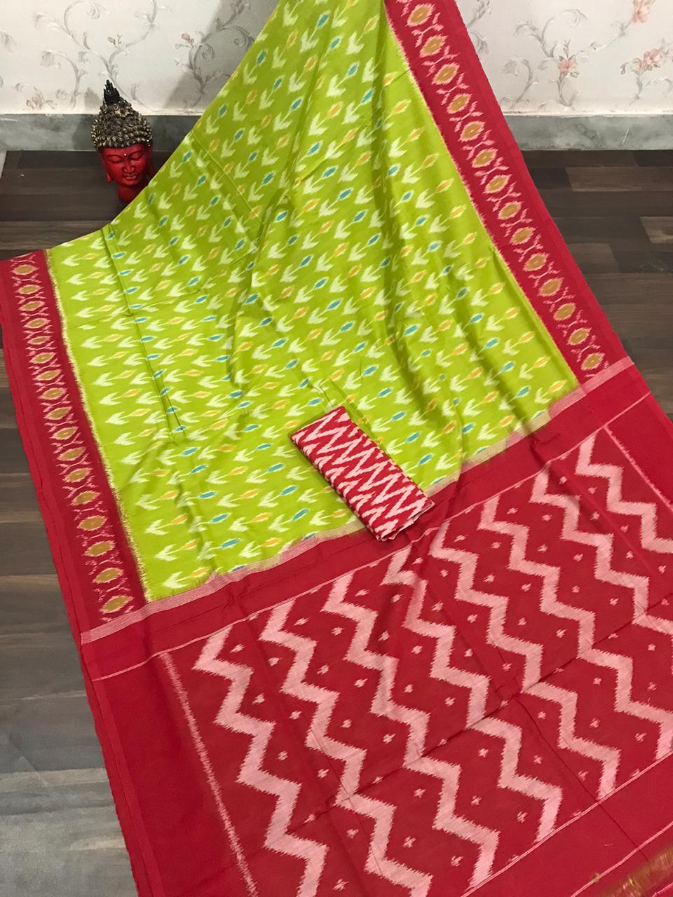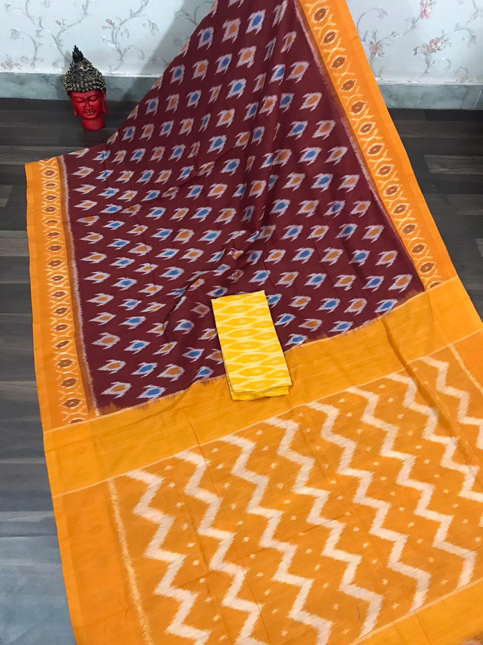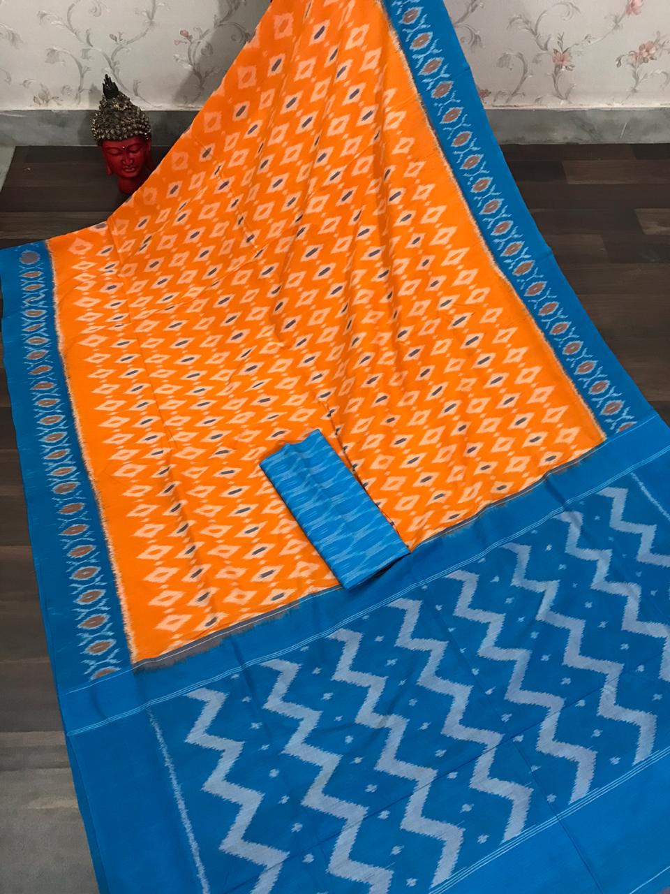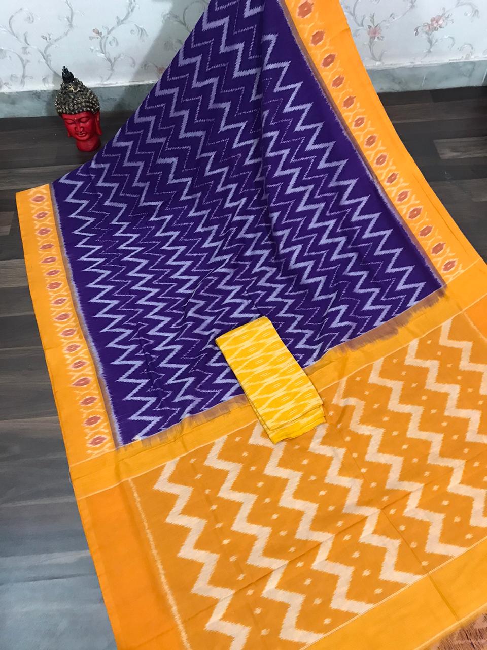 Pochampally Handlom Ikkath mersirised cotton sarees with blouse.