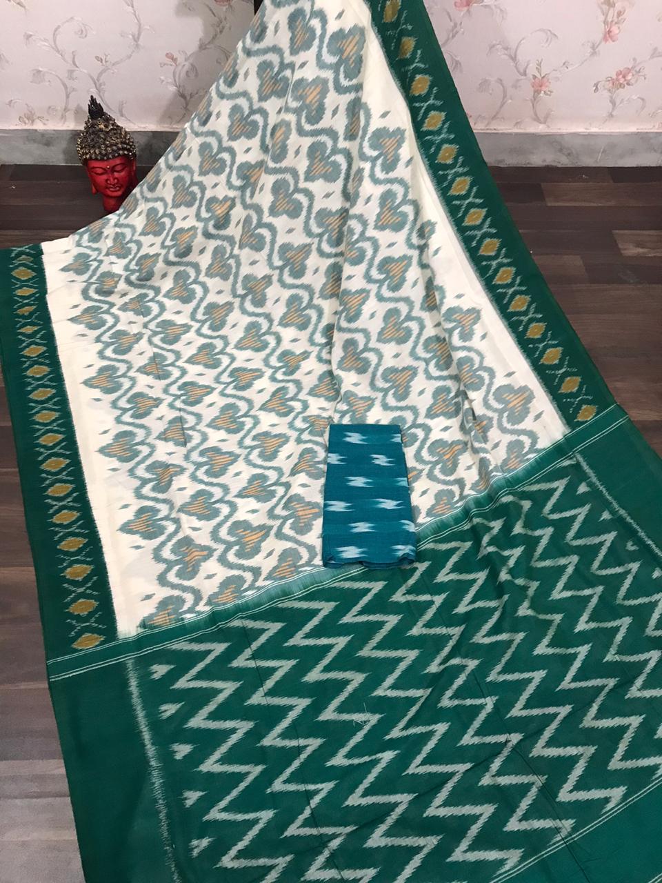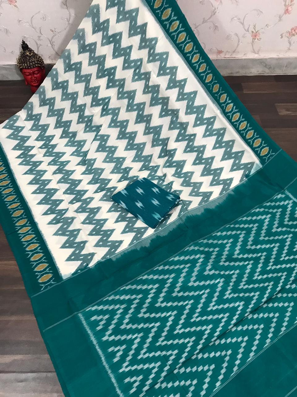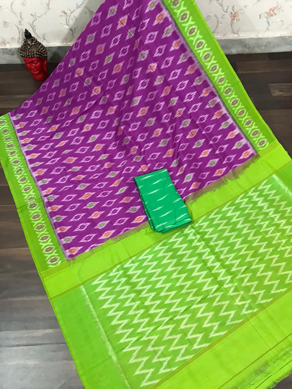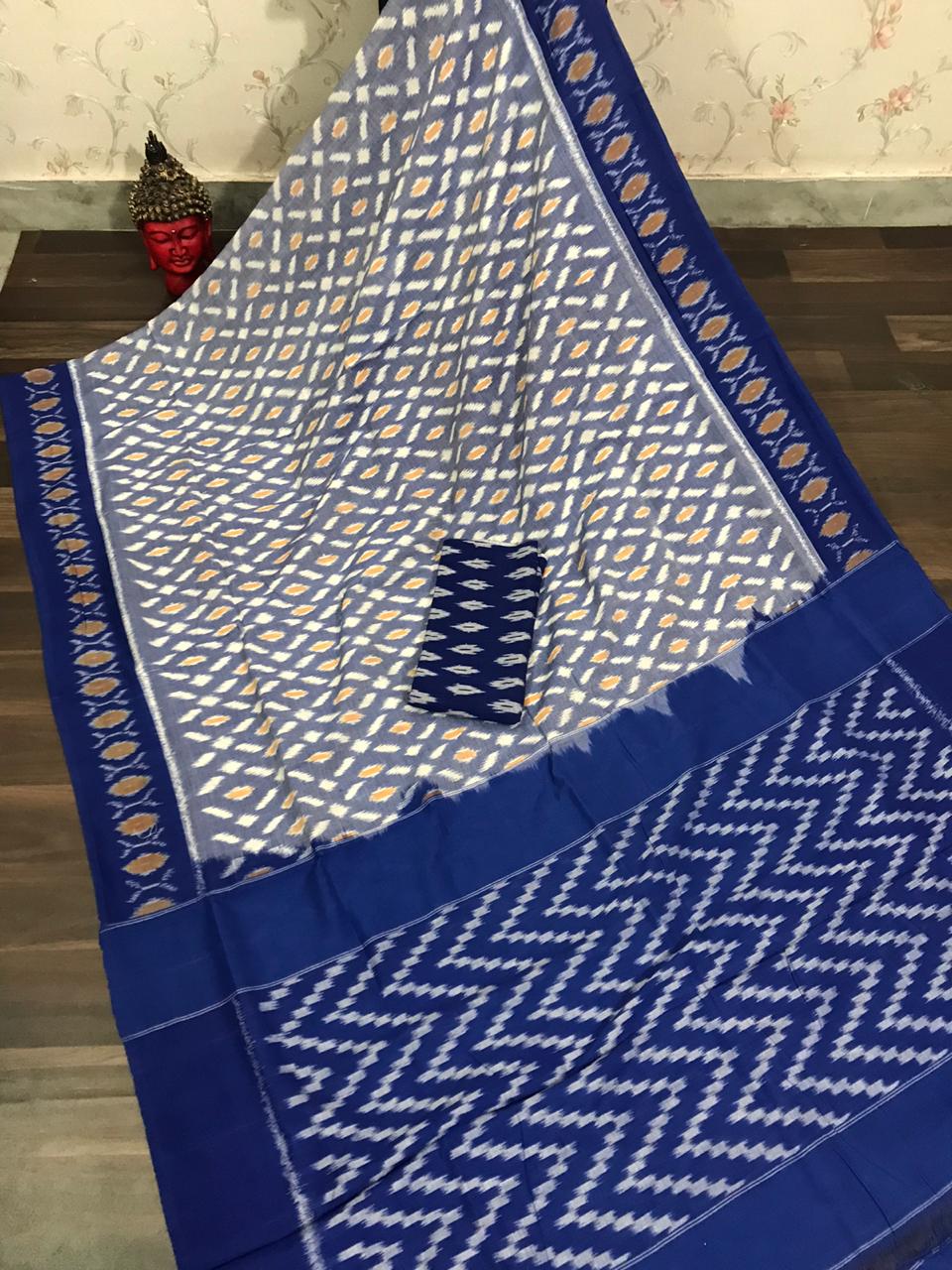 Pochampally Handlom Ikkath mersirised cotton sarees with blouse.
