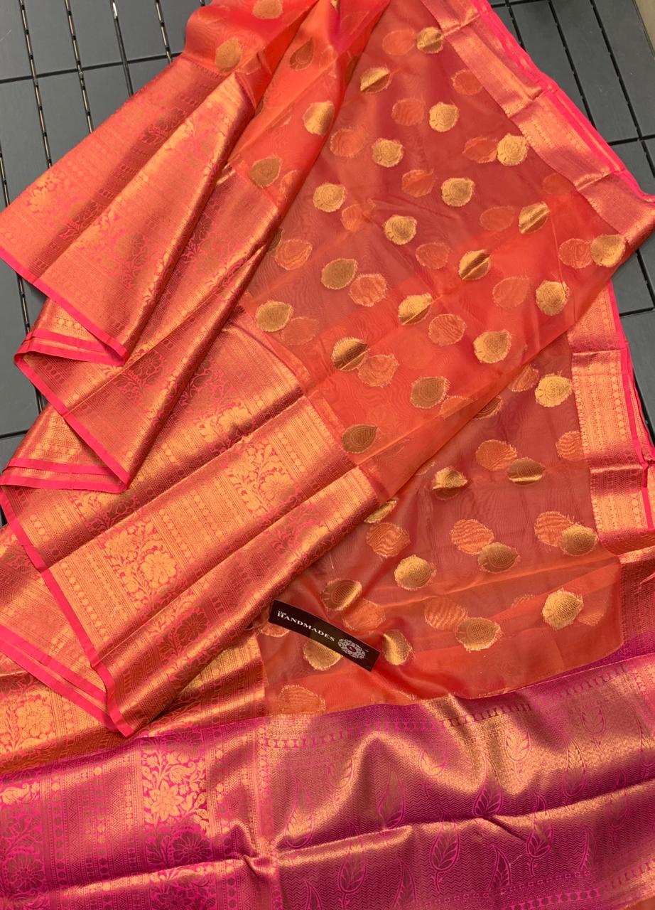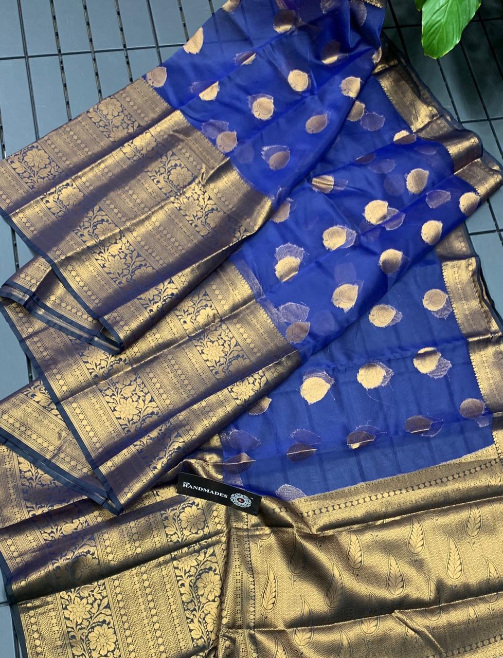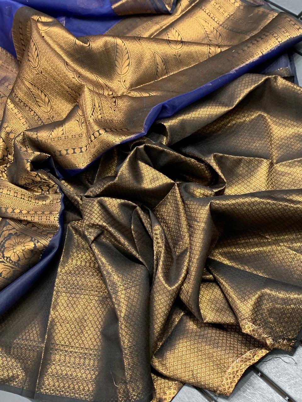 * New Arrival of Pure Handloom Kanchi Kora Sarees with 18 INCH Big Zari Antic Border & Buttas* Contrast Rich Zari Pallu* Contrast Brocade Blouse* Perfectly Suitable for Long Frocks, Lehengas & Anarkalis