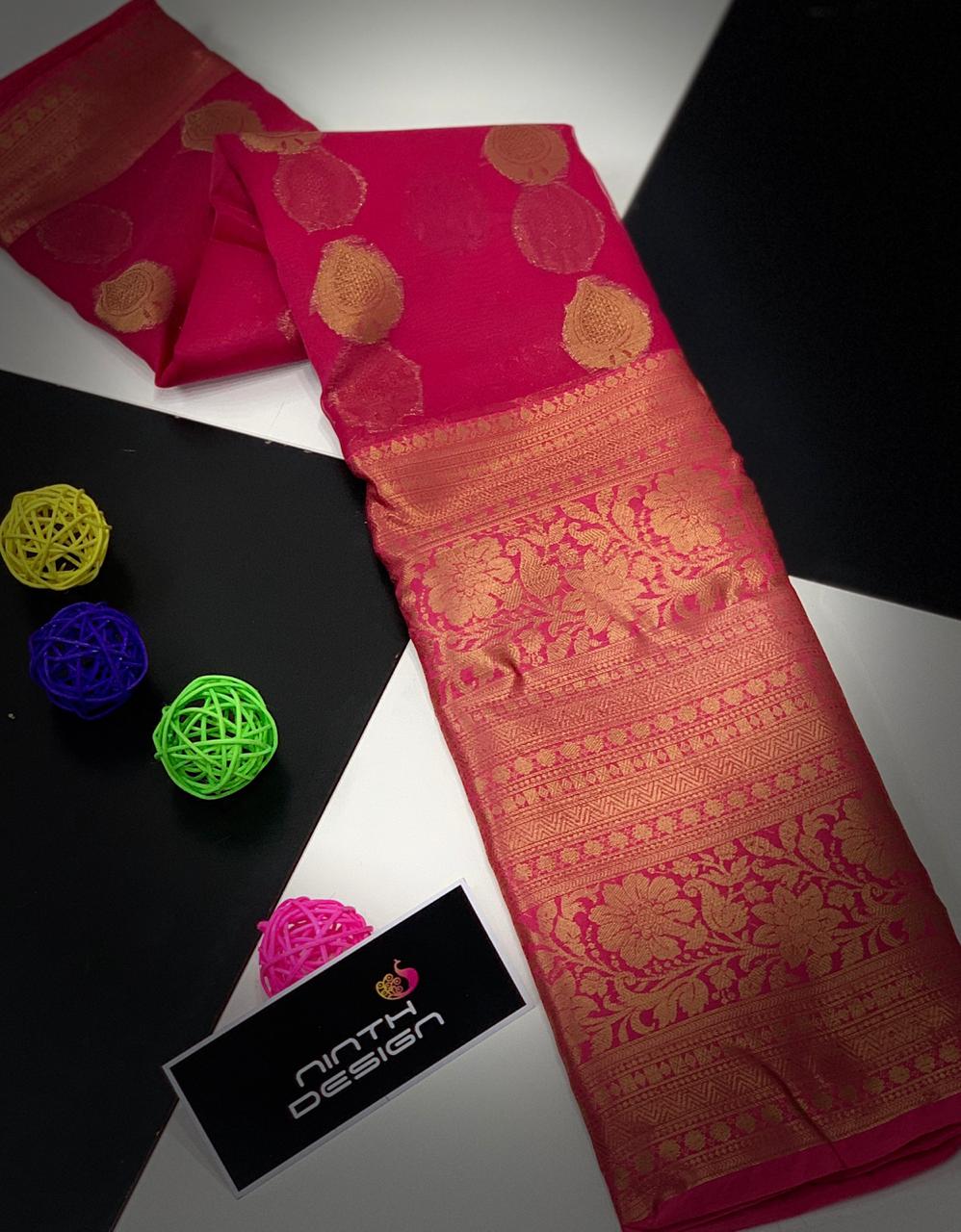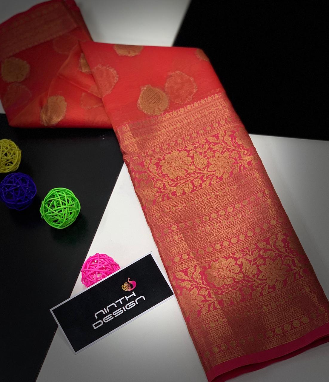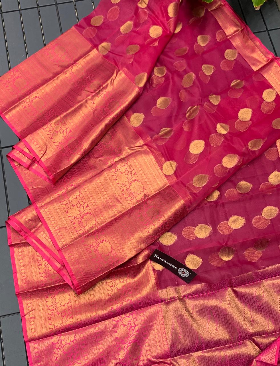 * New Arrival of Pure Handloom Kanchi Kora Sarees with 18 INCH Big Zari Antic Border & Buttas* Contrast Rich Zari Pallu* Contrast Brocade Blouse* Perfectly Suitable for Long Frocks, Lehengas & Anarkalis