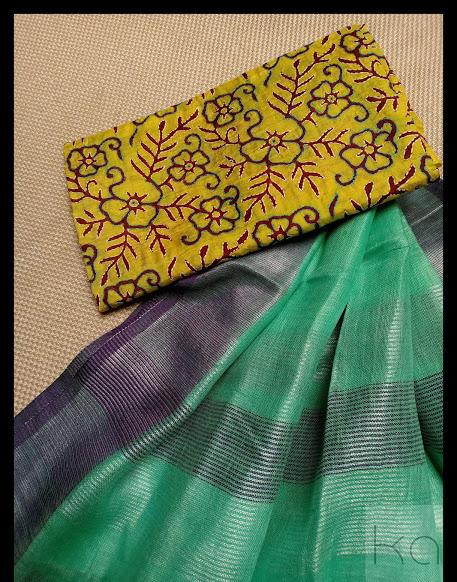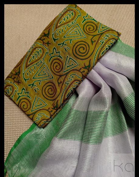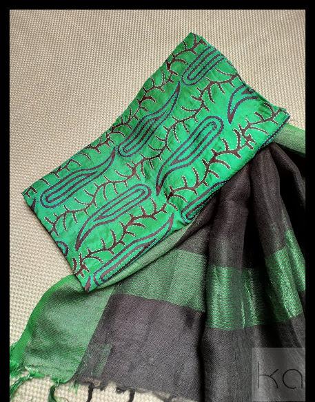Pure silk hand kantha work top with linen by linen duppatta
