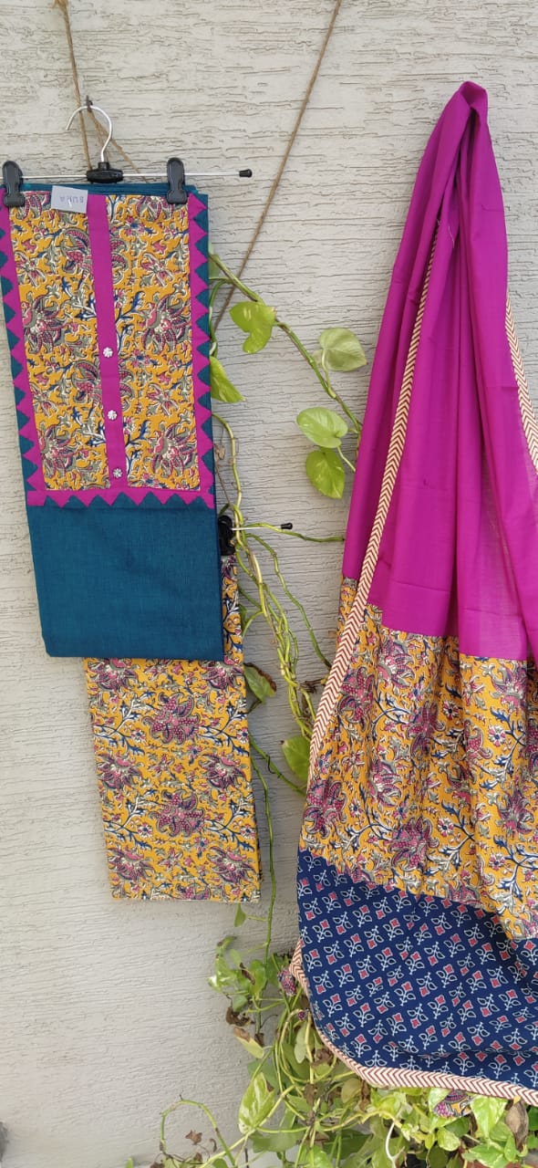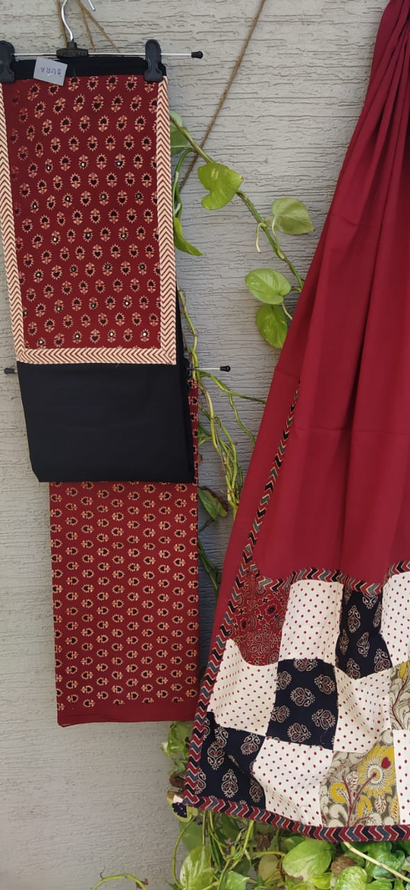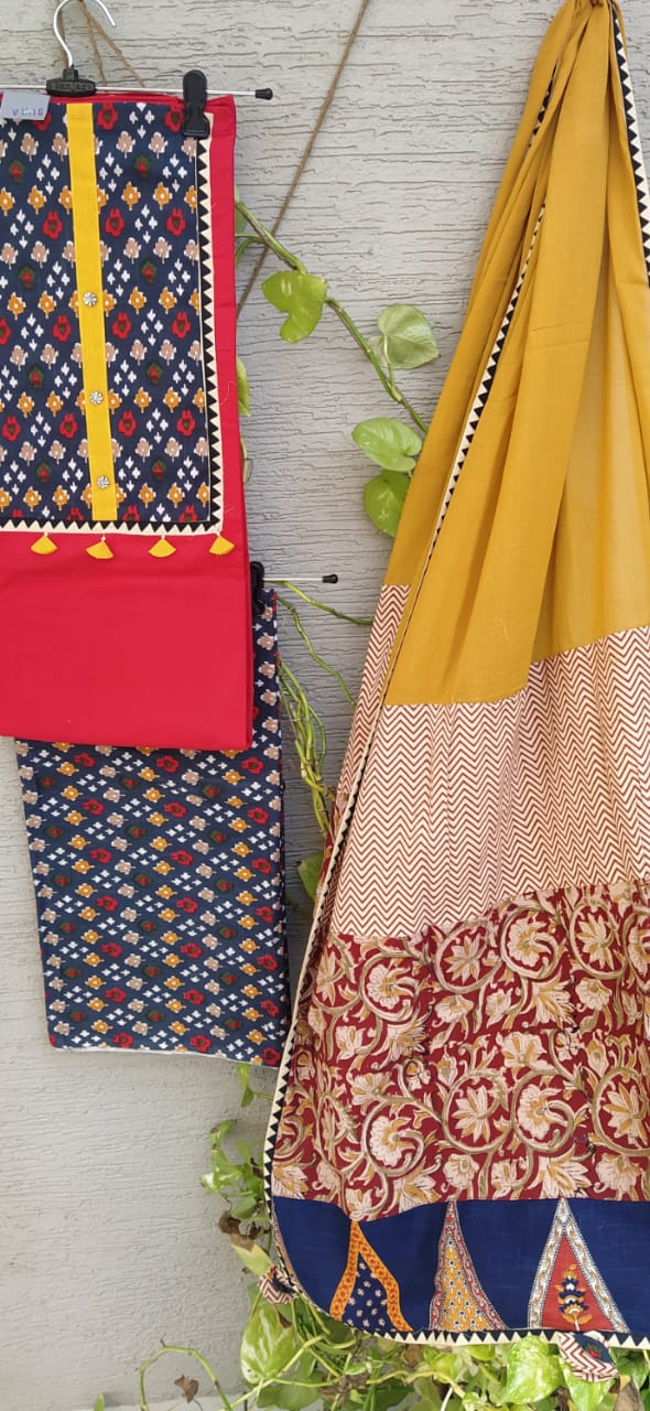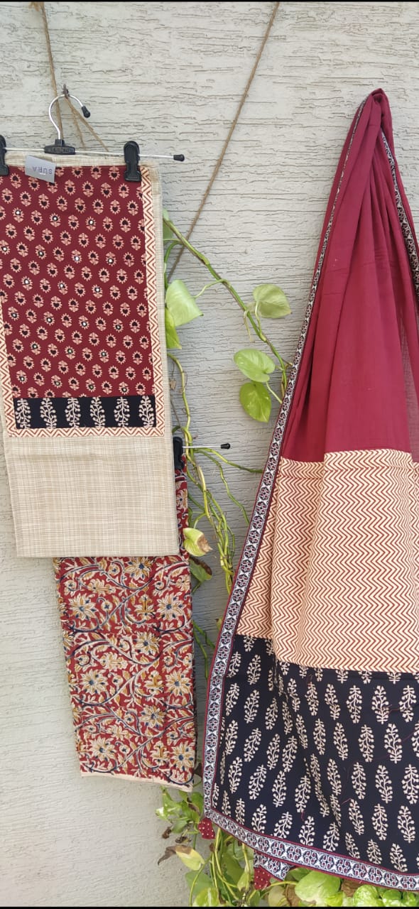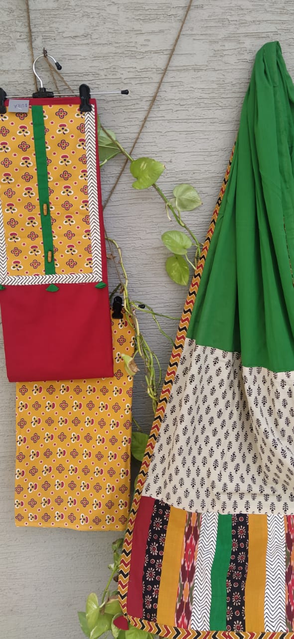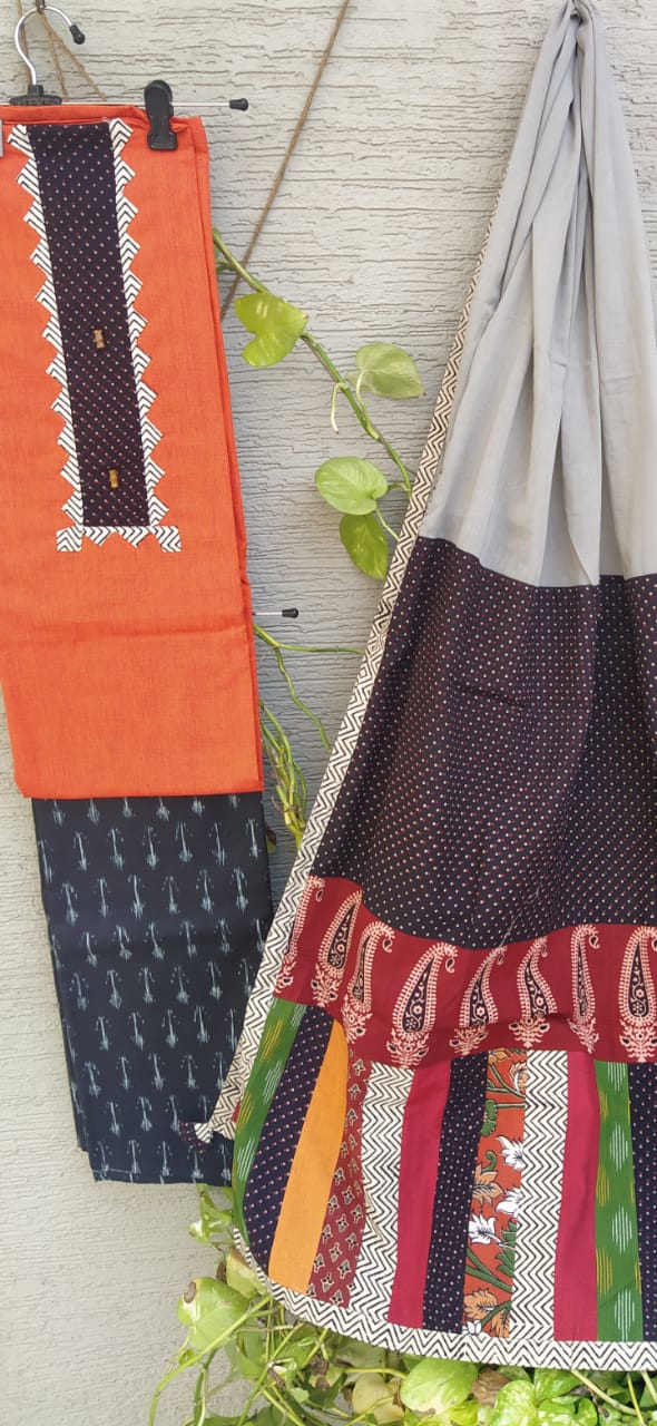 Pure khadi cotton neck patchwork too with cotton bottom and cotton patchwork dupatta