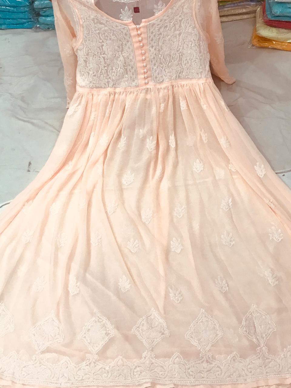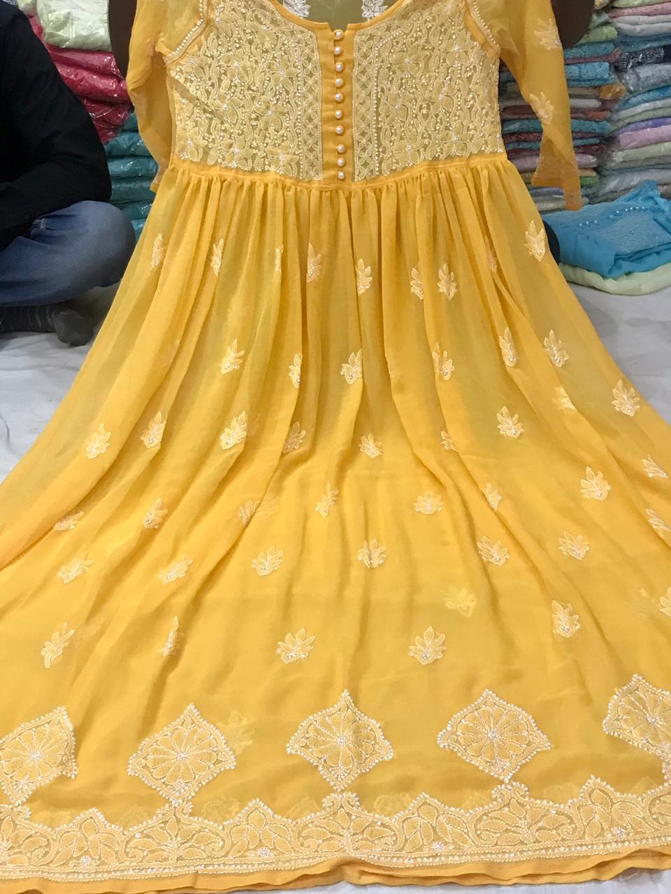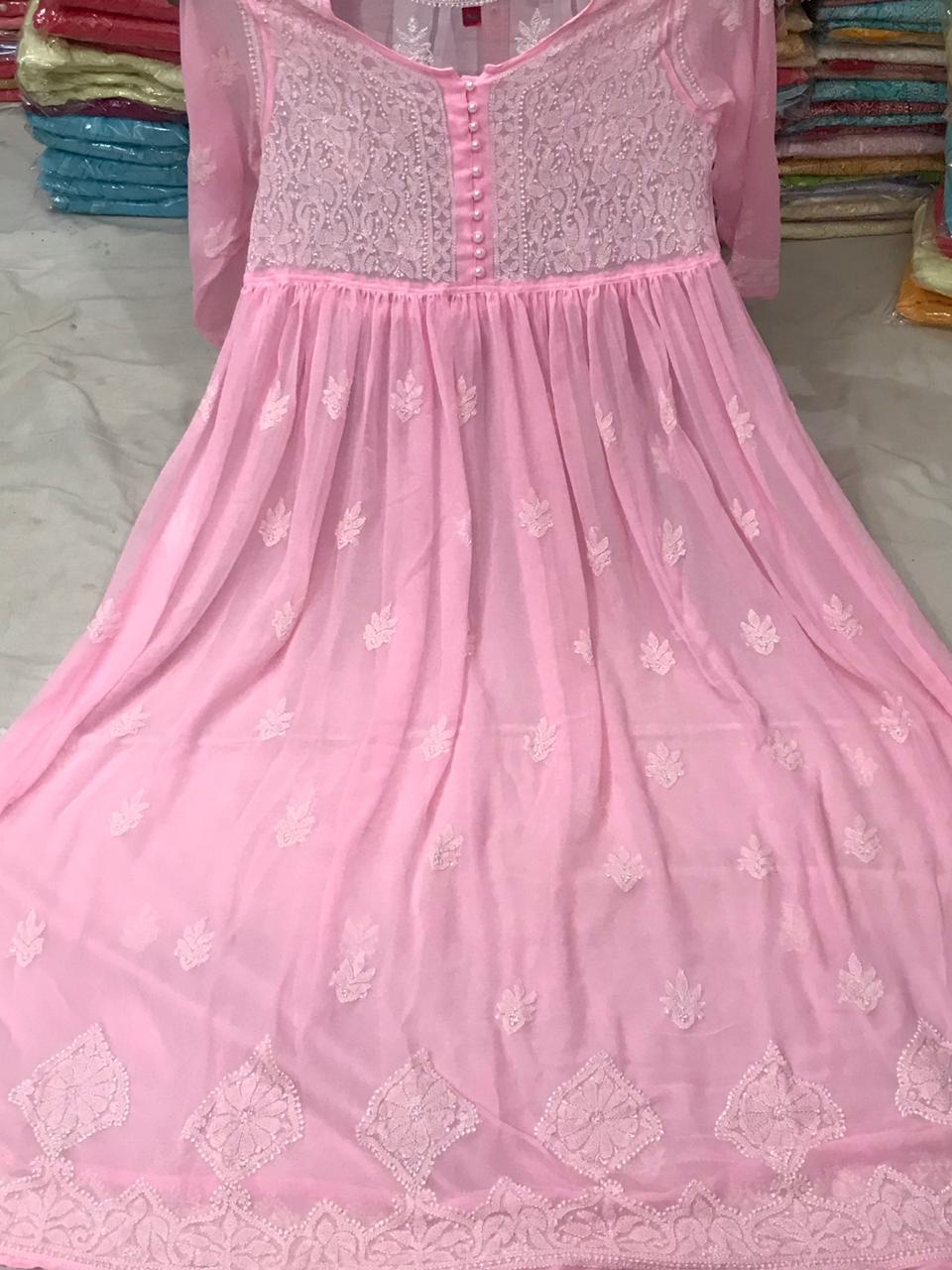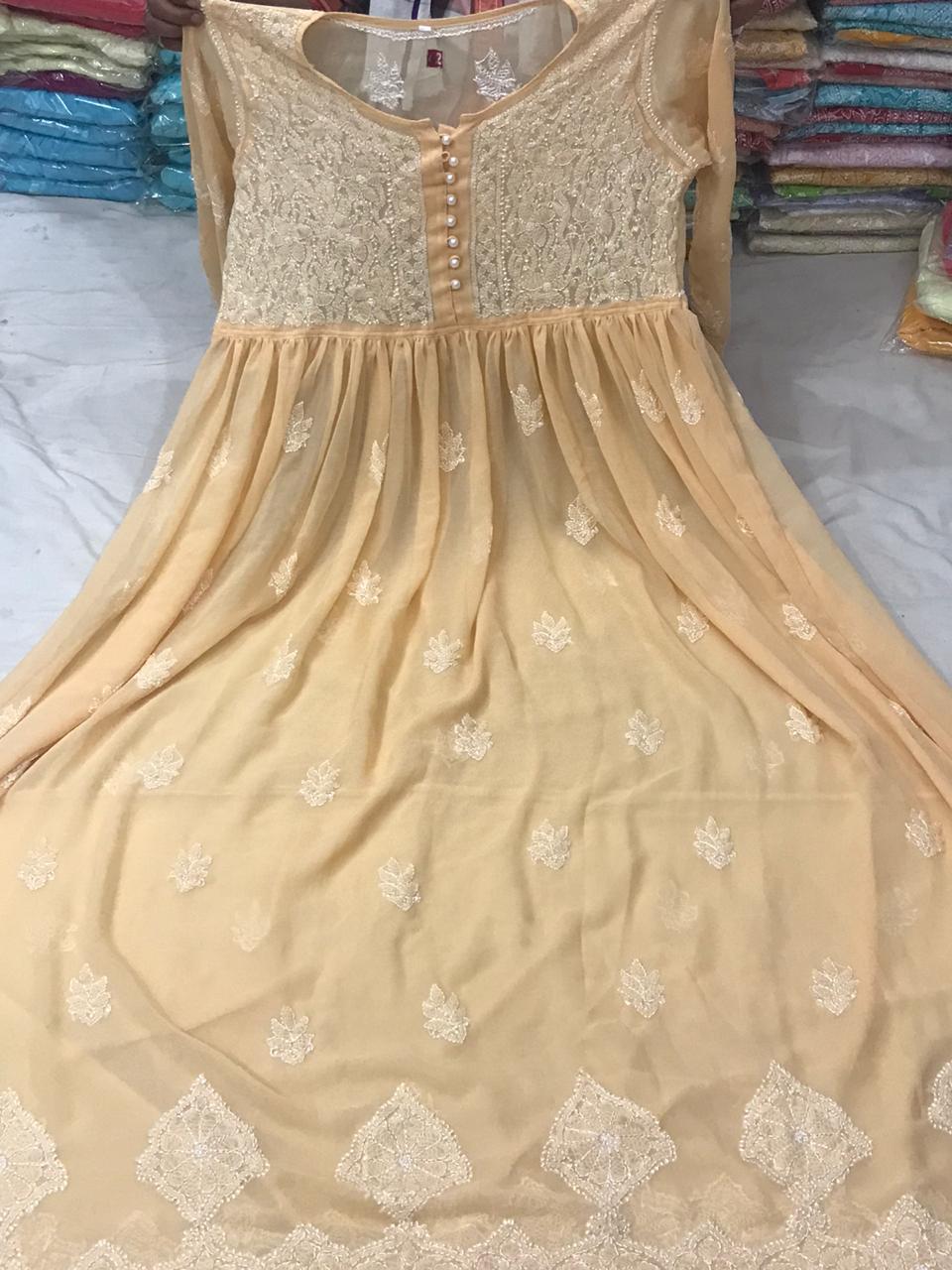 *Pearl button gown*38-46 ,Length 55, 60-60 Georgette ,Hand work,Resham Theead,Fine work ,Fancy work