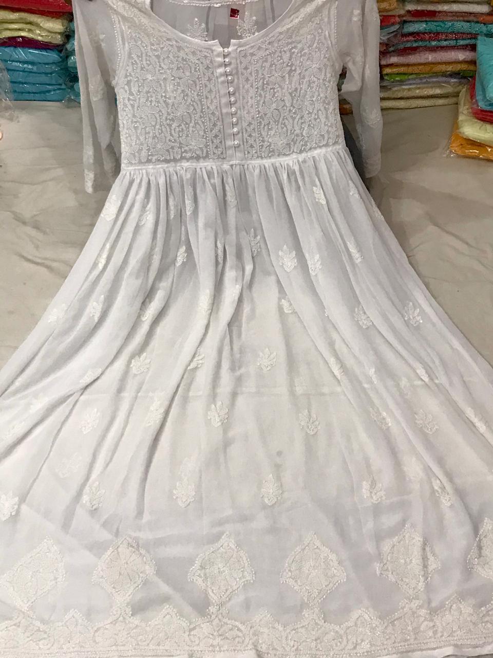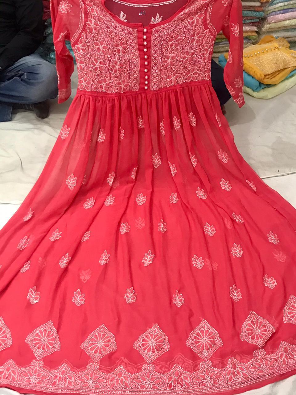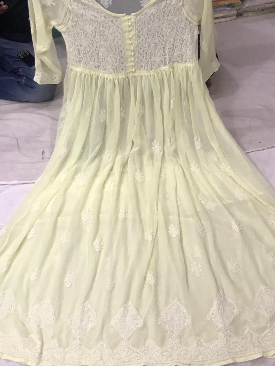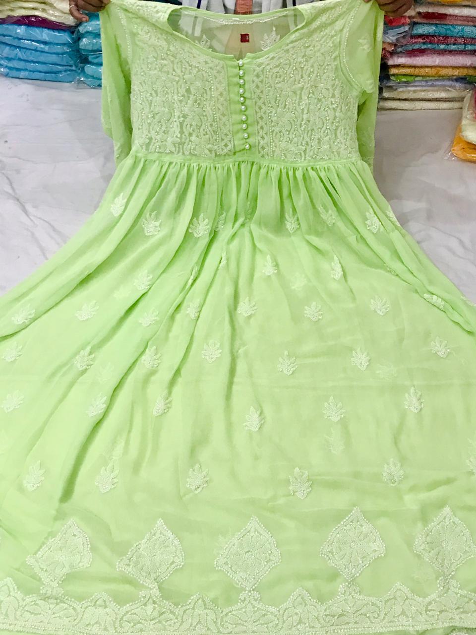 *Pearl button gown*38-46 ,Length 55, 60-60 Georgette ,Hand work,Resham Theead,Fine work ,Fancy work