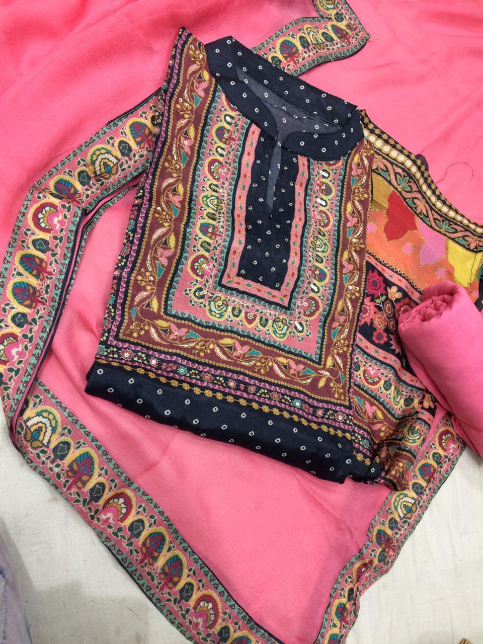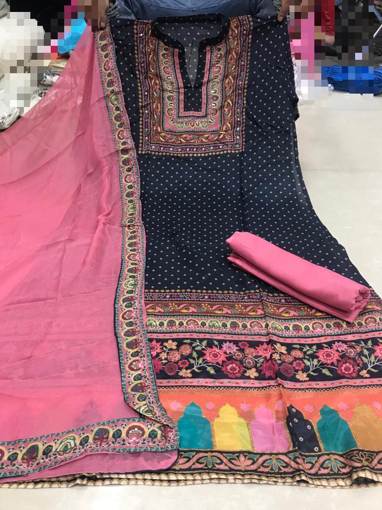 Pure modal cotton designer shirt with sequence work ?, Pure chiffon dupata with four side border?Pure cotton bottom ?
