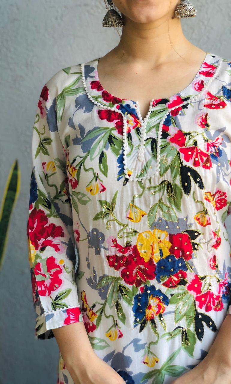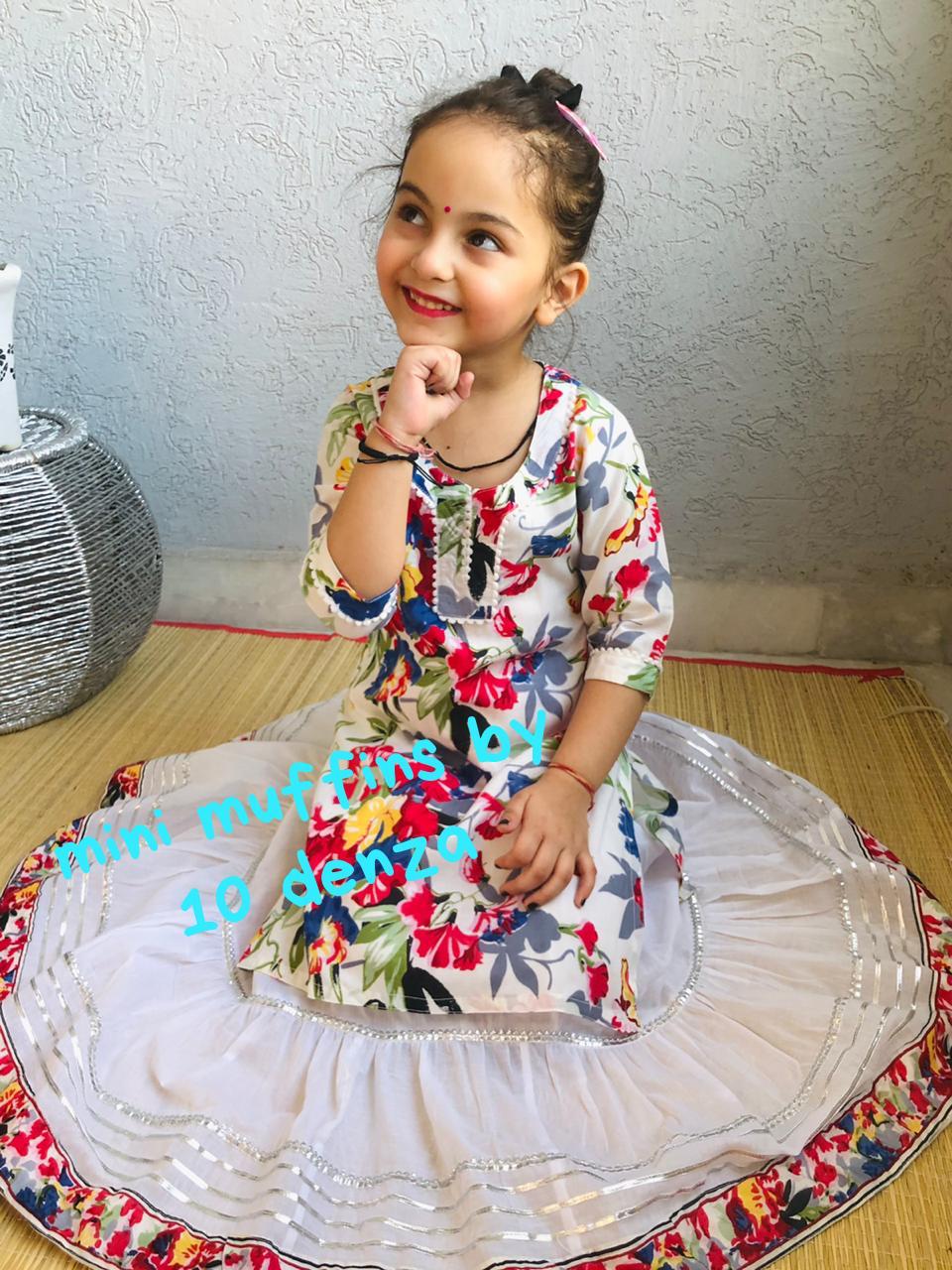 beautiful modal printed fabric with handwork work and lace combine with cotton skirt with gota lace ,38 to 46 ,ready to ship