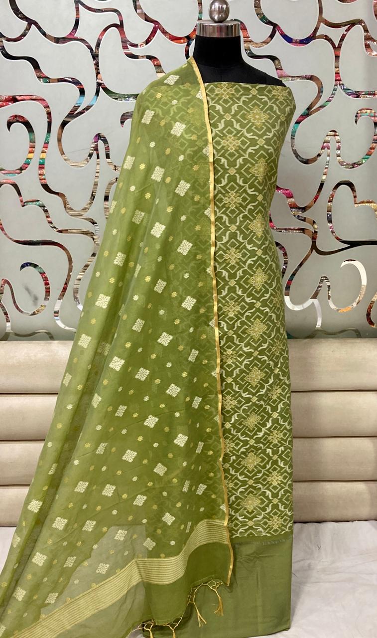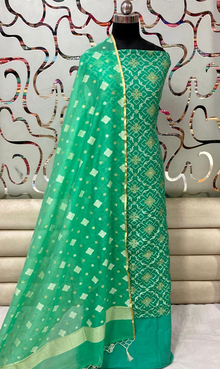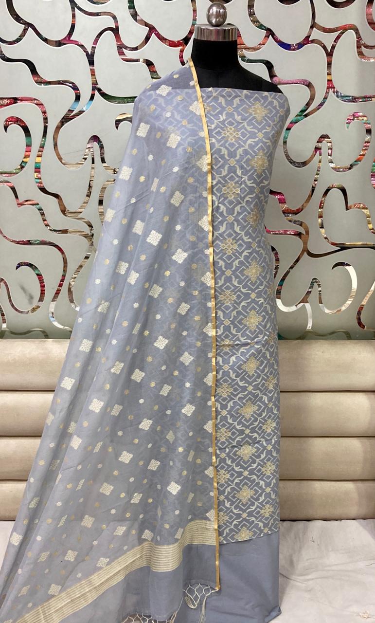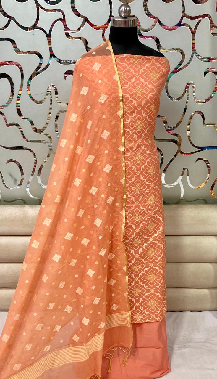 Cotton Muslin Ikkat (2.50mtr), dupatta:- Banarasi Handloom Cotton Muslin (2.50mtr),
