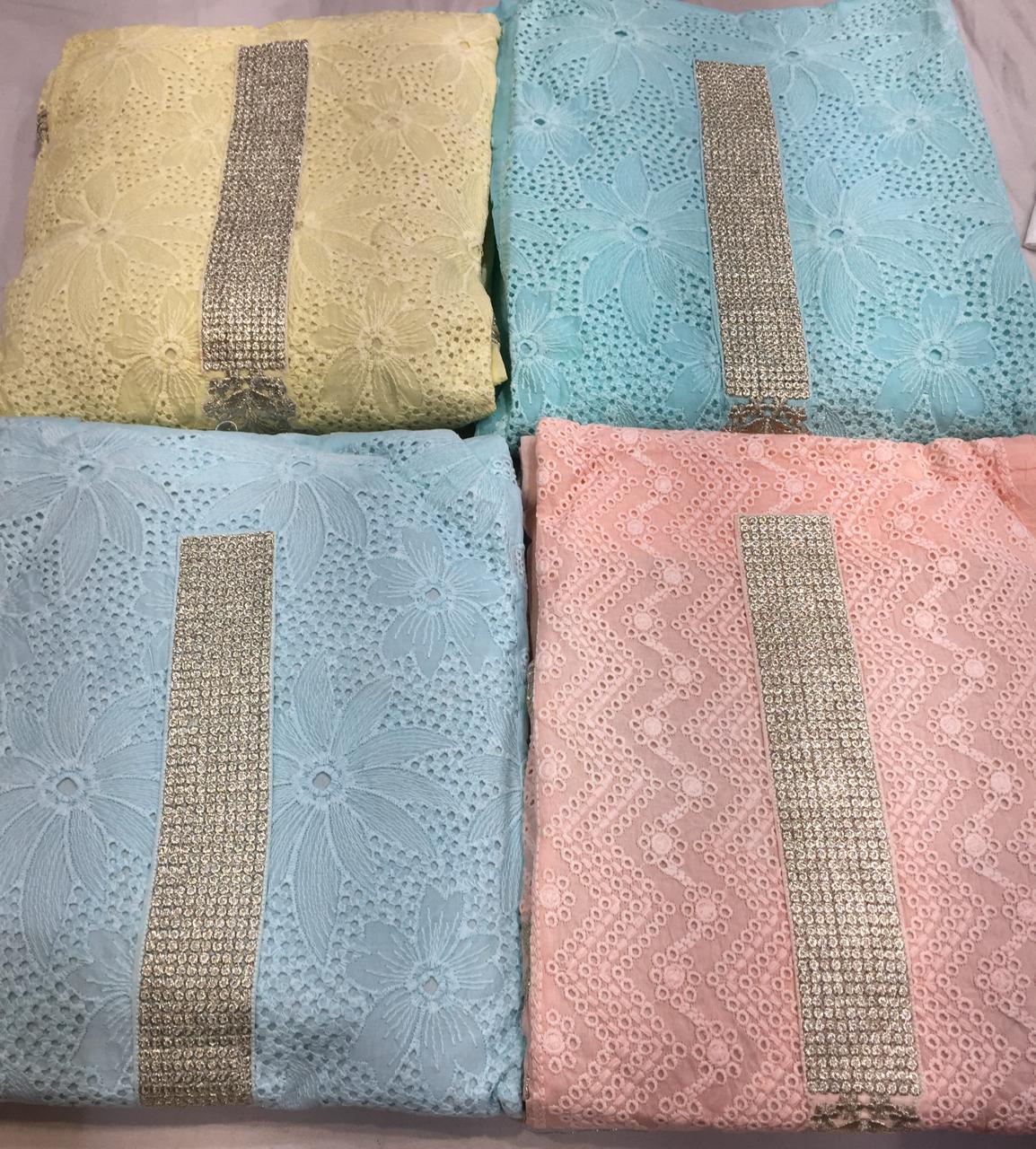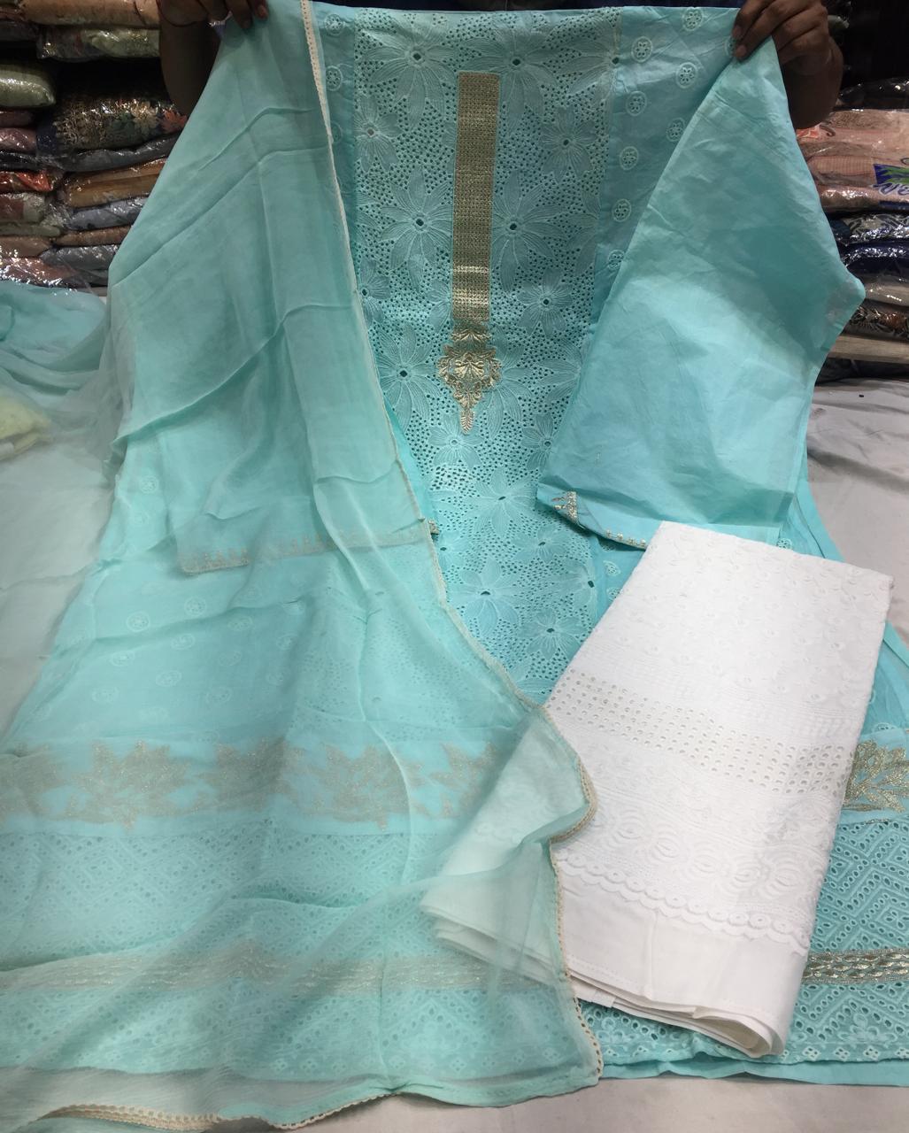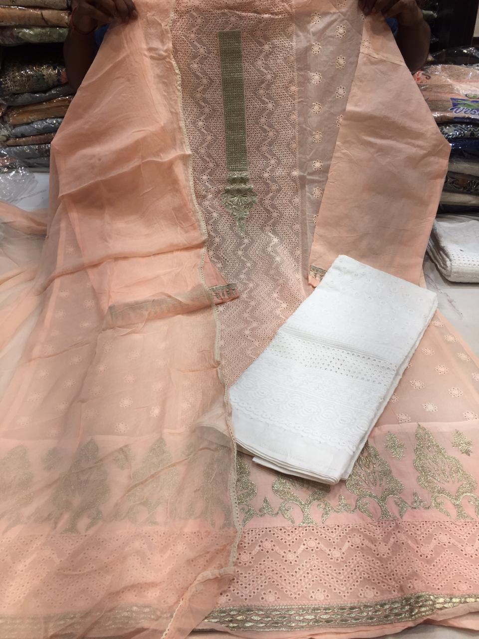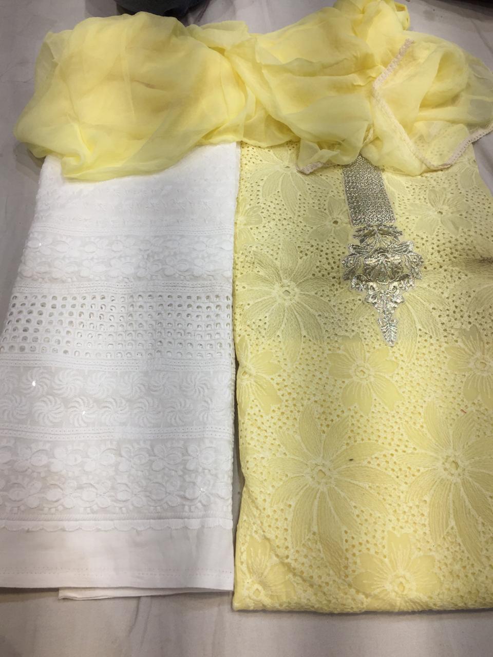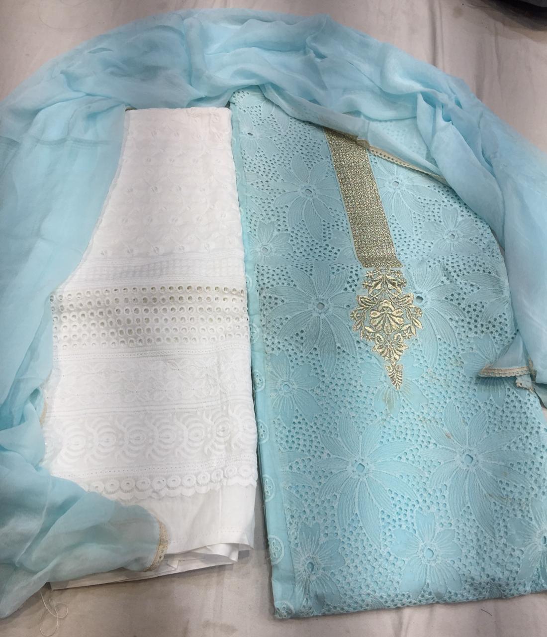 Organdi suits with chikan work and chiffon duppatta