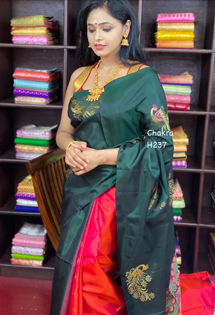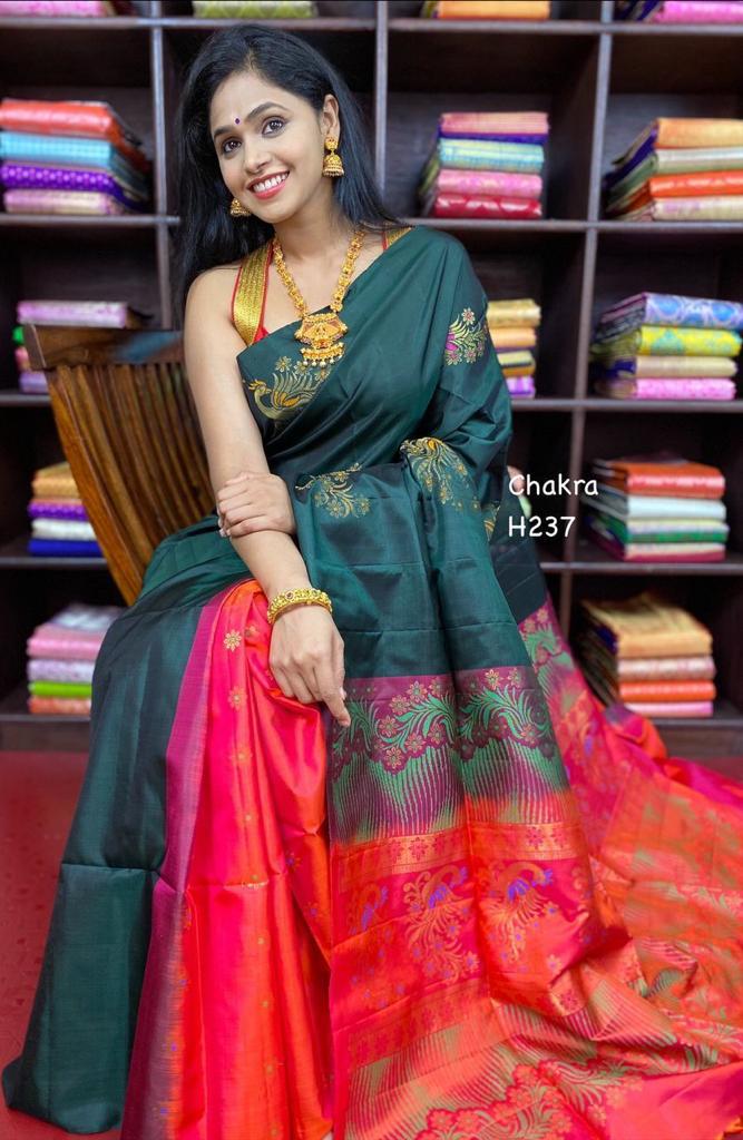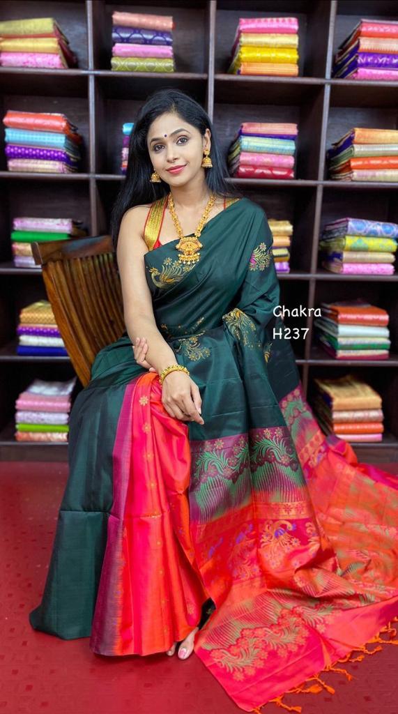 Pure Soft Kanchi pattu sarees,Handloom special ,Pure soft silk with Peacock Zari Design all over saree,Contrast Pallu,Contrast Blouse .