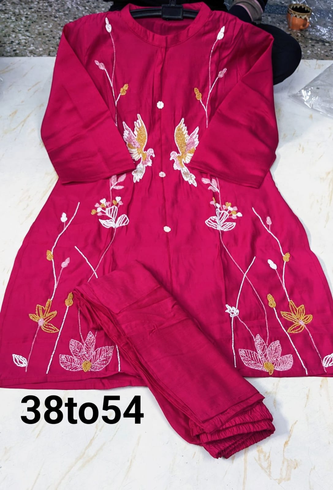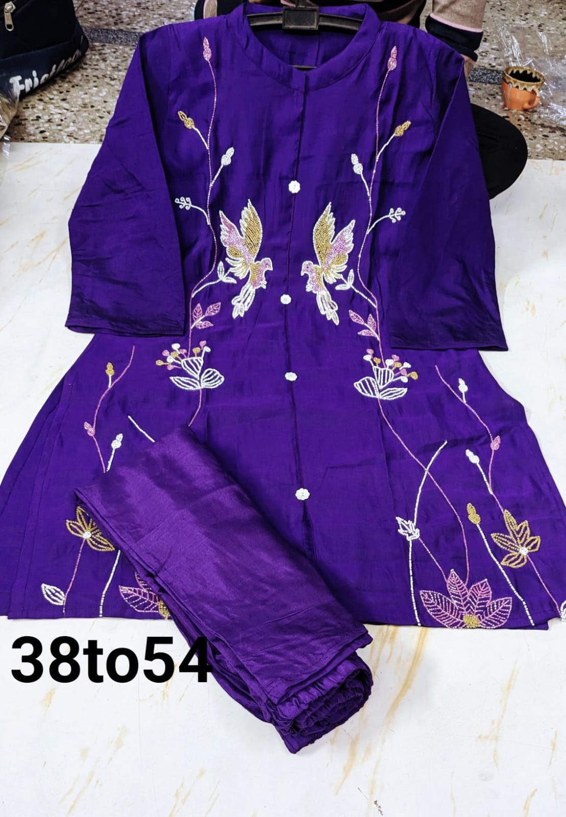 **Pure silk co-ord set with heavy hand work with beautiful pant