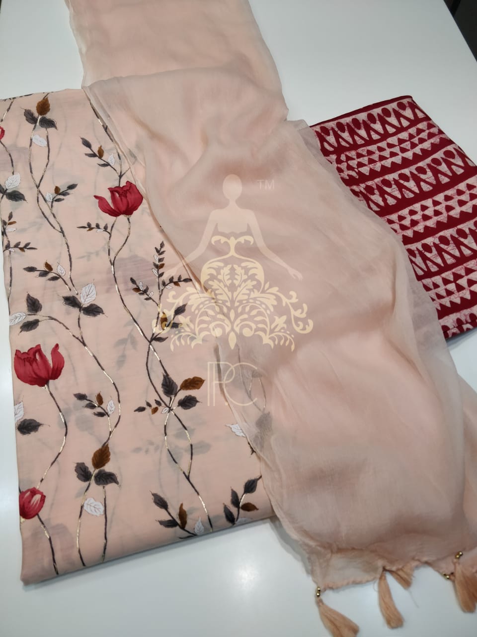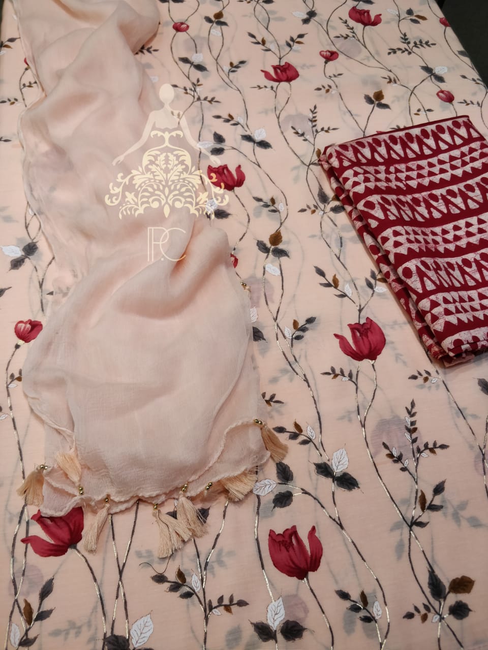 *? Printed Modal Silk Shirt*,*✔ Chiffon Dupatta*,*✔ Printed Modal Silk Bottom*