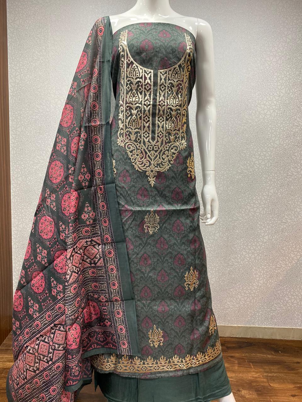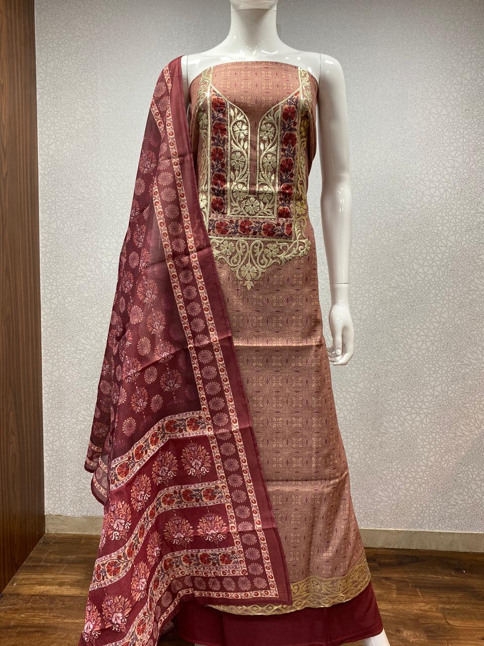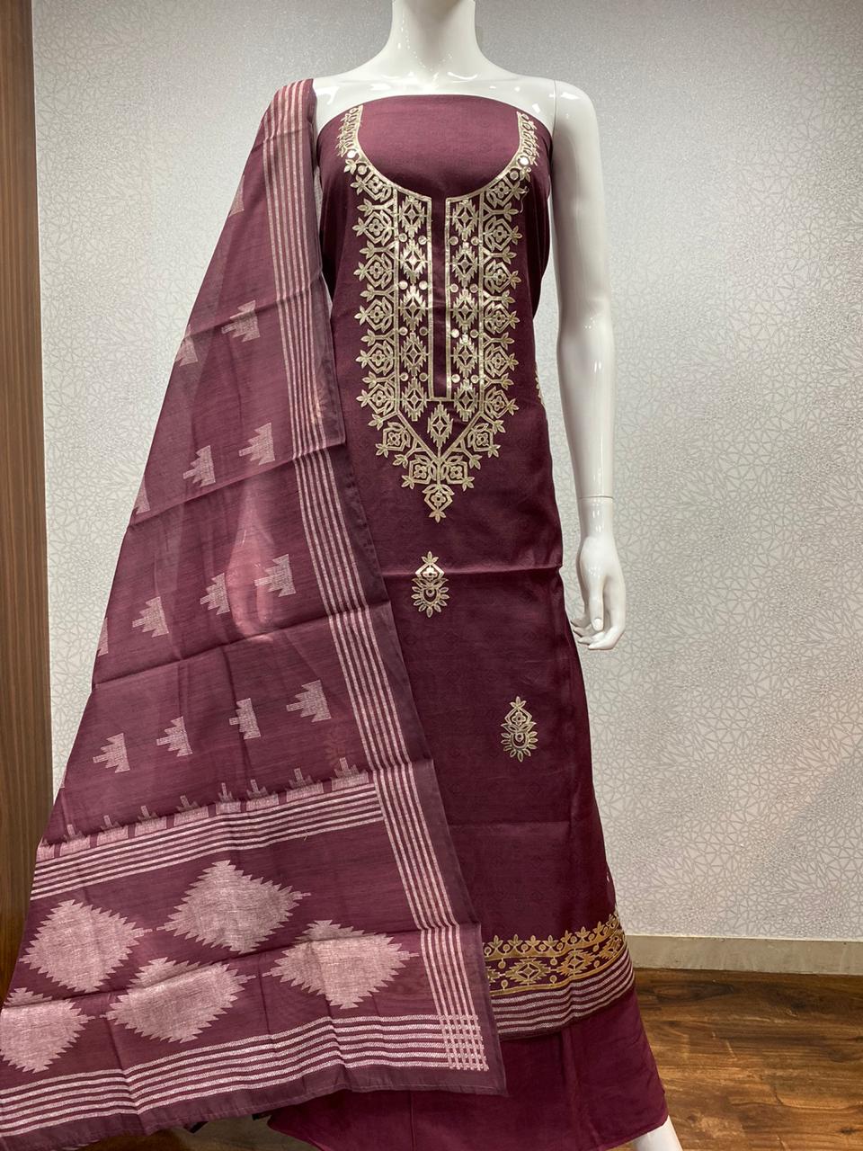 Pure chanderi dress materials.